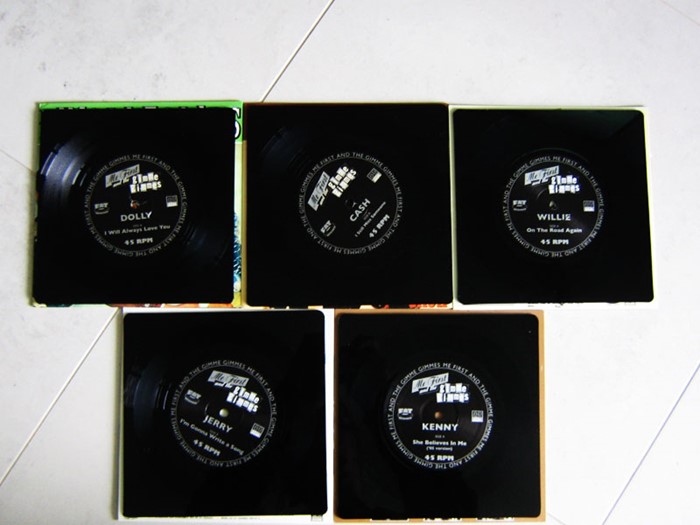 Além dos discos serem quadrados, cada um leva o nome de um intérprete que foi homenageado no “Love Their Country”. O Lado A de cada disco é a cover que foi gravada no disco originalmente (com exceção de “Jerry” que tem uma versão demo de “East Bound And Down” e “Kenny” que tem uma versão demo de “She Believes In Me”) e o Lado B é uma outra cover do mesmo intérprete, inédita até então.