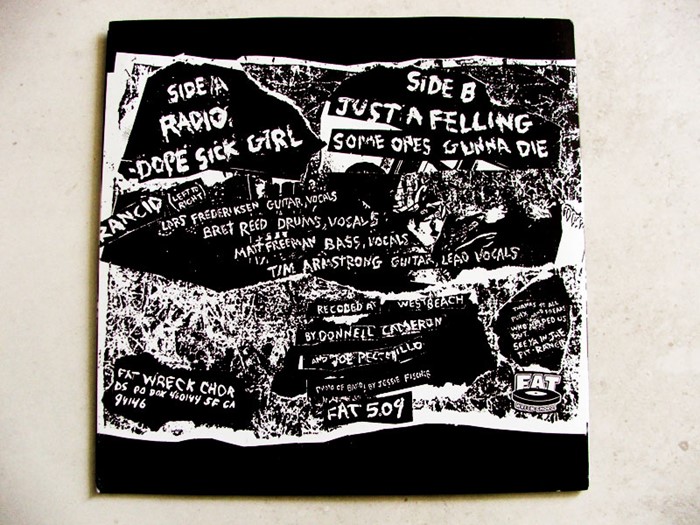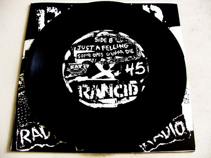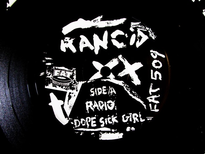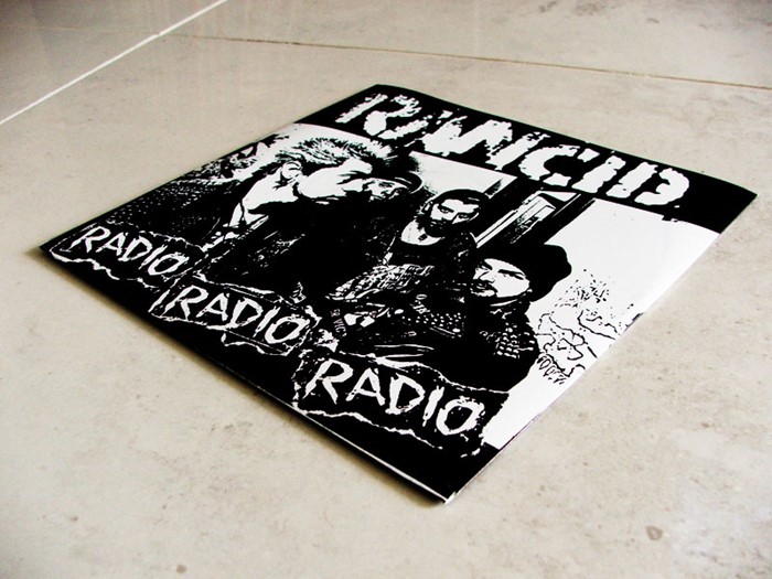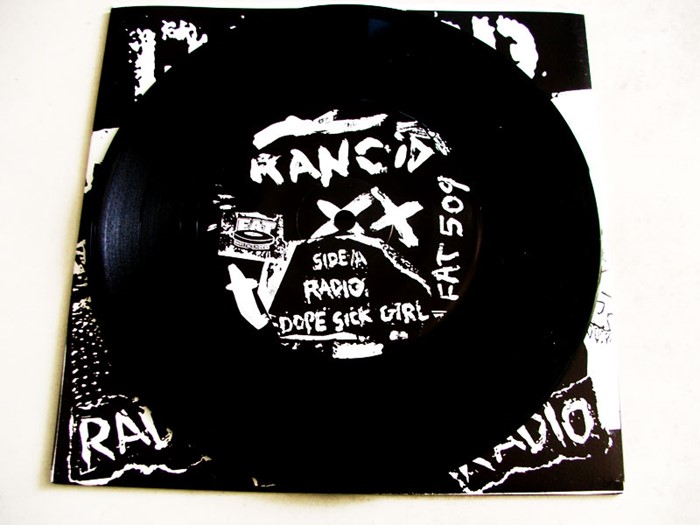 Uma cópia original, importada, nova, nunca antes tocada do disco de vinil 7″ “Radio Radio Radio” do Rancid. É a primeira gravação da banda com Lars Frederiksen, são 4 músicas e o disco saiu pela Fat Wreck Chords. Conta com versões demo de “Radio” e “Dope Sick Girl”, que estão no álbum “Let’s Go”, mais uma cover de “Someone’s Gunna Die Tonight” do Blitz e o b-side “Just A Feeling”.