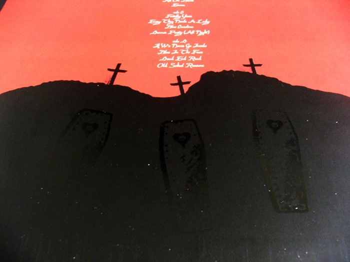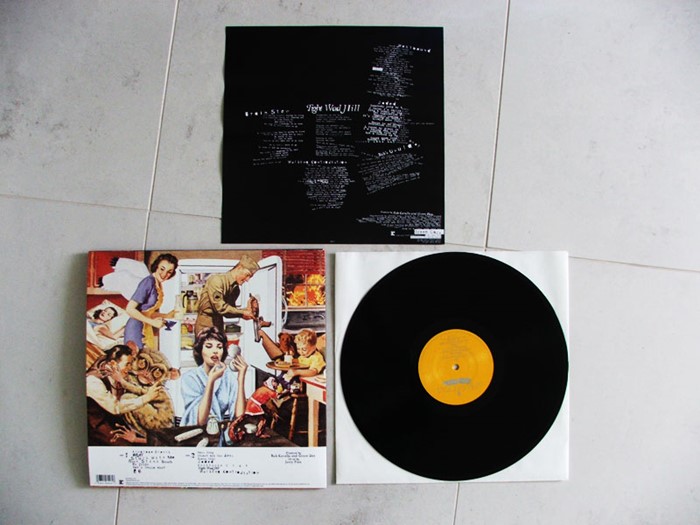 A caixa é em estilo “gatefold” (abrindo, tipo um livro), e o encarte tem todas as letras mais algumas fotos. Particularmente acho a capa desse disco muito foda, e a parte de trás combina bem com todo o resto da arte.