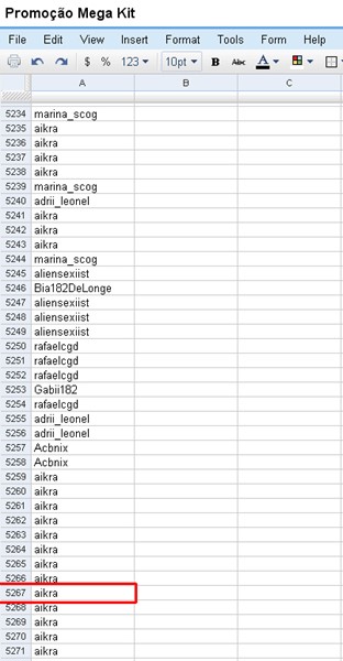 Foram 8.818 cupons no total, e eu fiz o mesmo esquema de todas as outras promoções, coloquei tudo numa planilha e sorteei através do site random.org .