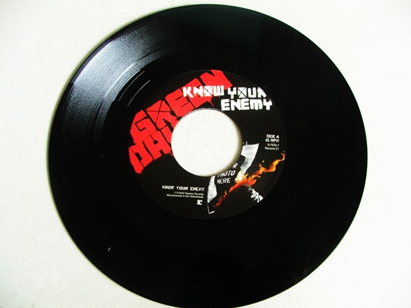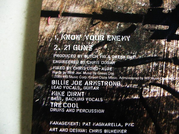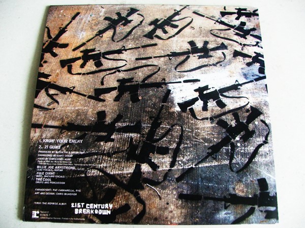 E o último single da caixinha é do mais novo disco do Green Day. “Know Your Enemy” foi a primeira música de trabalho e no lado B trás “21 Guns”, a segunda. O desenho da capa é muito bonito, e a parte de trás é bem feita, gostei bastante. O lado negativo é que o single poderia trazer um b-side como “Lights Out” por exemplo.