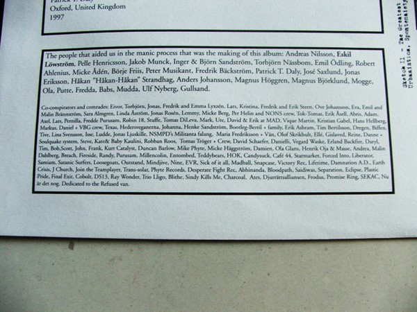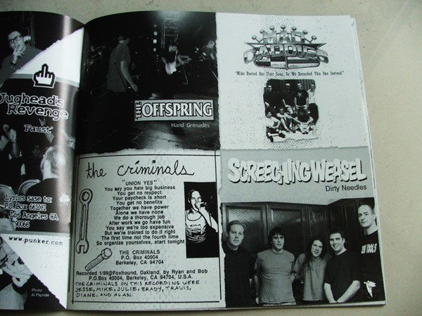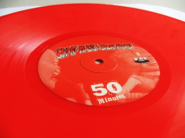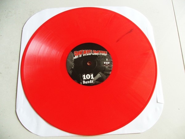 O vinil é lindão, além de ser vermelho com algumas manchas pretas, vem com um encarte quase do tamanho de um disco de 7″ com fotos de TODAS as 101 bandas. E tem fotos bastante curiosas, como o Green Day nos primórdios, o Ben Weasel com cabelo, o Paddy do Dillinger Four peladão e o Blink-182 na época mainstream.