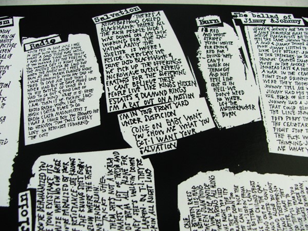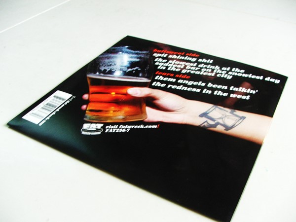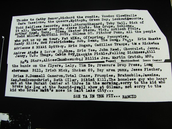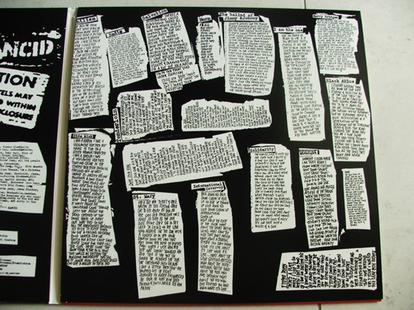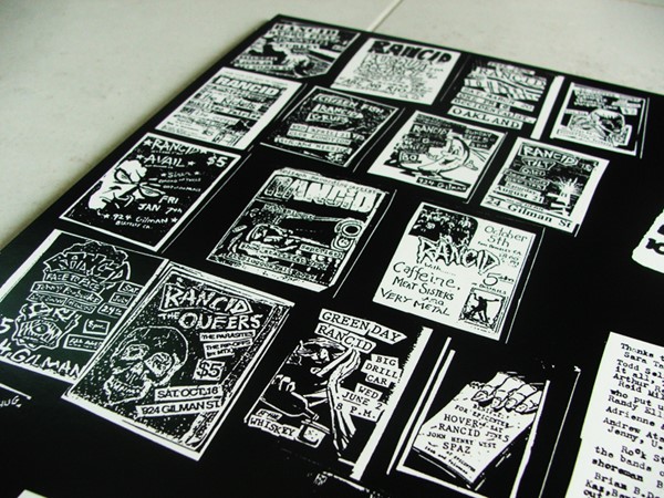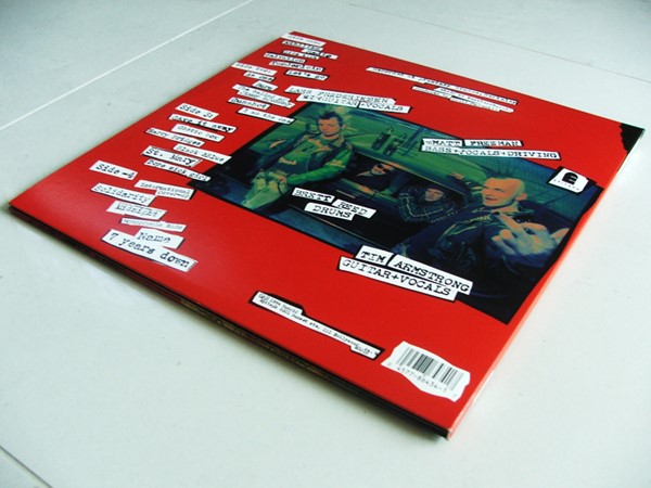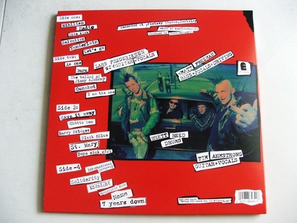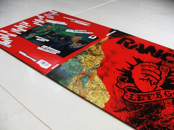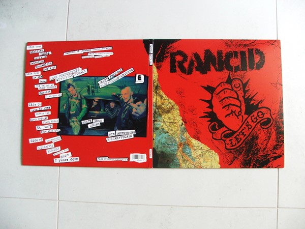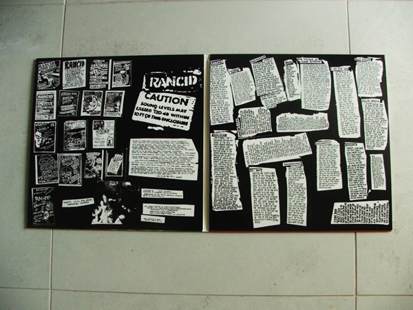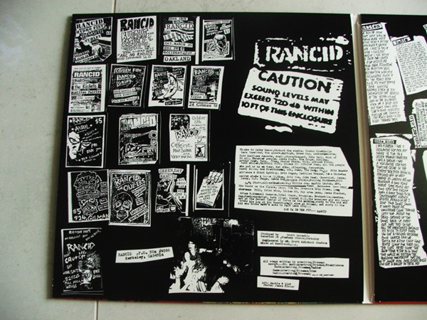 O disco é menor que um normal, mas não chega a ser do tamanho de um compacto, então é muito foda, fica tipo um livrão mesmo, e a parte de dentro é clássica, com vários pôsters de showzaços que o Rancid fez no começo da carreira.