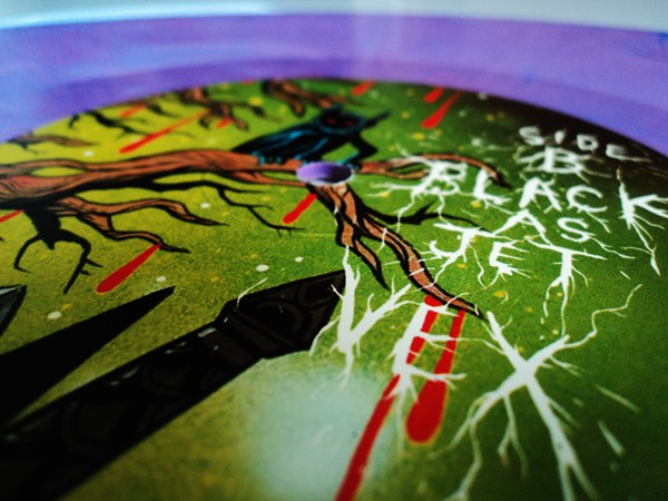 O disco tem uma arte lindíssima, com uma capa que pode render muitas tatuagens por aí e ainda ganhou o LP em disco de vinil roxo com várias manchas de outras cores. Caprichado demais.