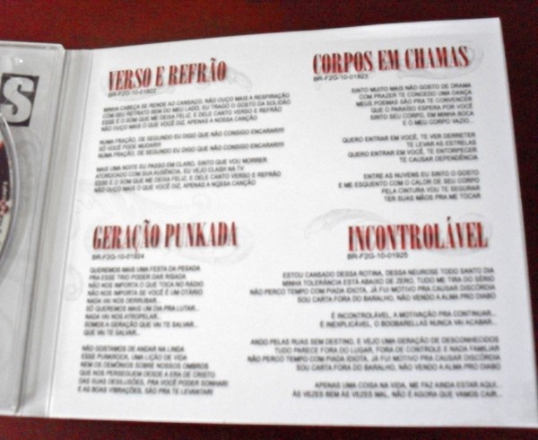 A melhor letra do álbum sem dúvida é “Tattoo”. Uma ótima definição sobre quem vive entre agulhas e cores e usa a dor de fazer tatuagem como uma forma de se fortalecer contra os baques da vida. Talvez por isto música foi escolhida como o single do disco com direito a clipe.“Verso e Refrão” e “Corpos Em Chamas” traz melodias bem construídas e belos solos de guitarra.