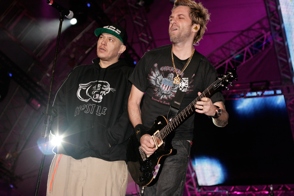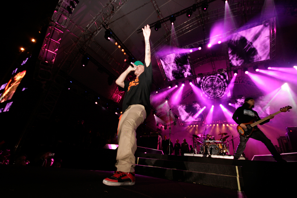 Próximo ao final do show um dos vocalistas da banda falou que o Festival reunia tantos tipos diferentes de música mas que éramos todos iguais, e aí convidou Chorão do Charlie Brown Jr. para participar da festa.