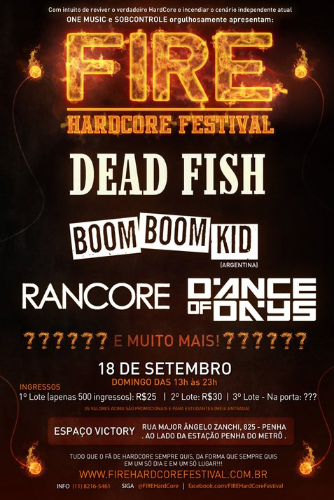 Infos e Locas de Venda: www.firehardcorefestival.com.br