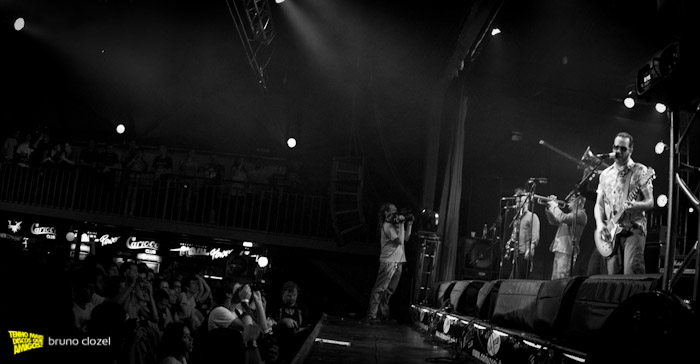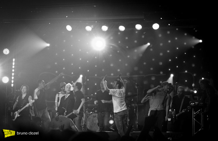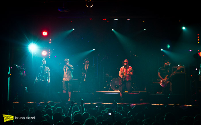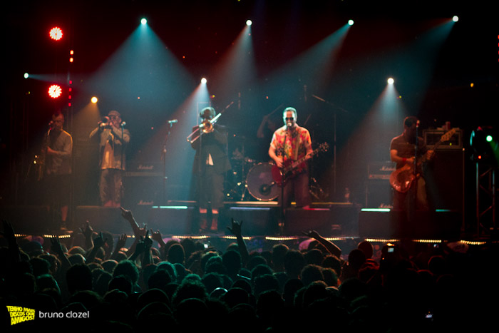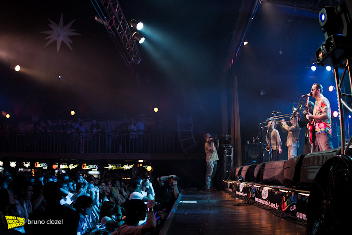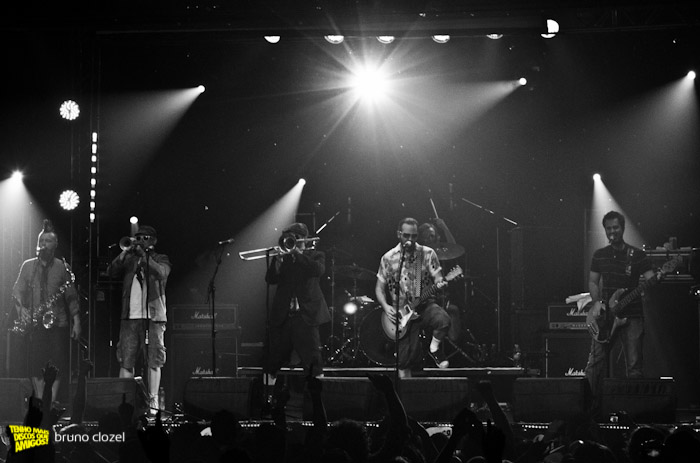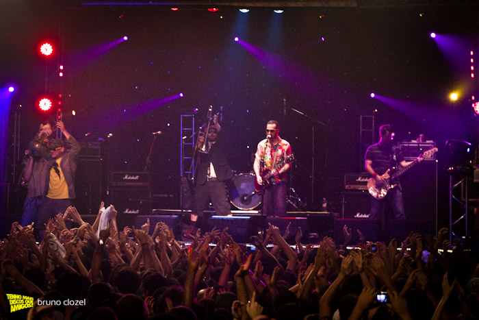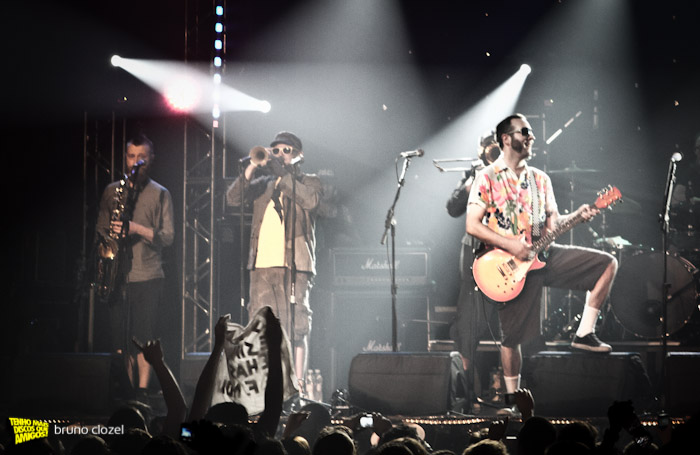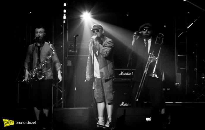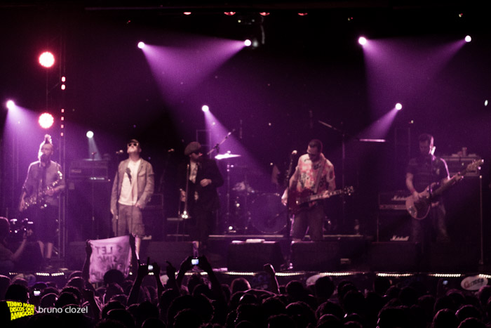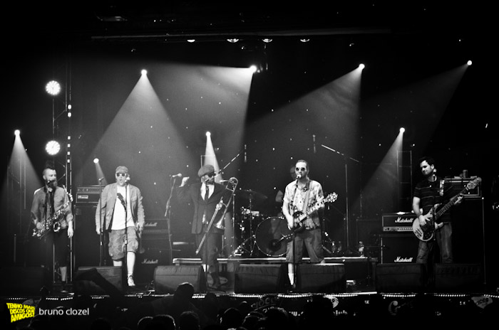 Por sorte, meu atraso me fez perder apenas “Everything Sucks”, música que abriu o set do Reel Big Fish. Quando entrei no Carioca Club, no meio de “Trendy”, me deparei com o lugar lotado, centenas de braços pra cima, e gente cantarolando as clássicas linhas do excelente naipe de metais do sexteto. E se a animação do público fervia a esse ponto, em “I Want Your Gilfriend To Be My Girlfriend Too”, as dancinhas à moda ska e os coros aumentaram ainda mais.