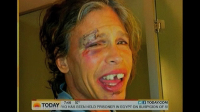 Como você pode ler no TMDQA!, Steven Tyler, do Aerosmith, sofreu um acidente no Paraguai, na última terça-feira (25) – ele caiu enquanto tomava banho; quebrou dois dentes, cortou a sobrancelha e ficou com vários hematomas no rosto.