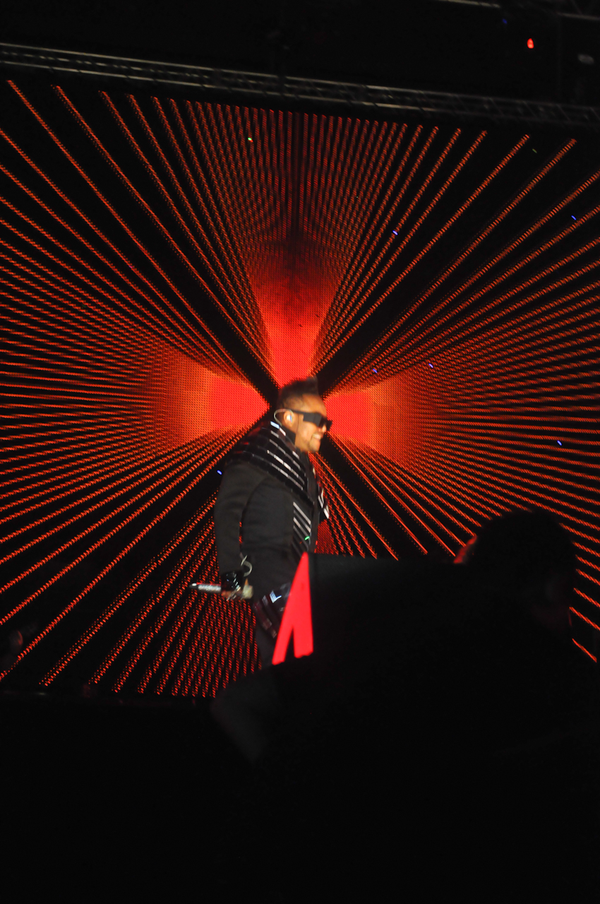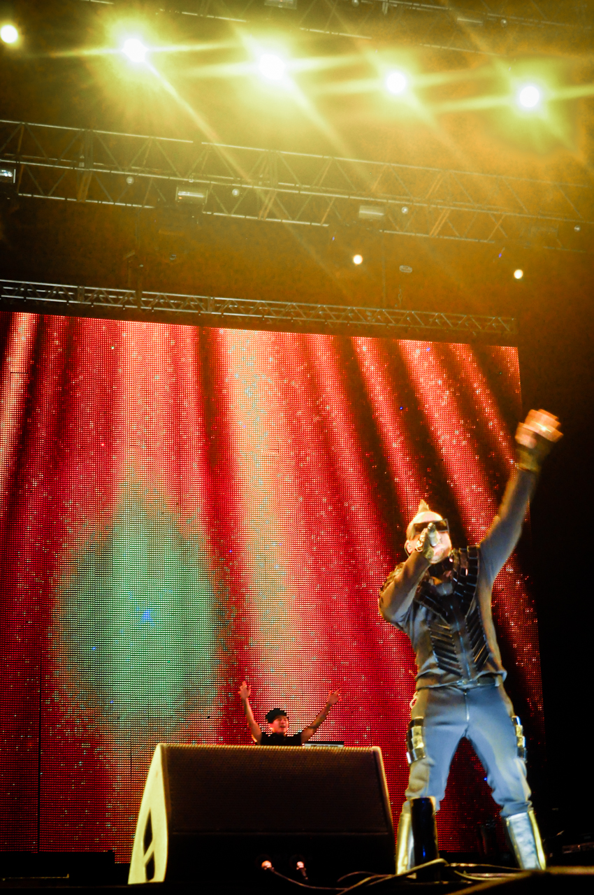 Se eles estavam em Paulínia, eu não sei, mas se estavam presenciaram uma verdadeira balada regada a hip hop e música pop assim que o cara subiu ao palco com seu visual pra lá de bizarro e ego sempre inflado.