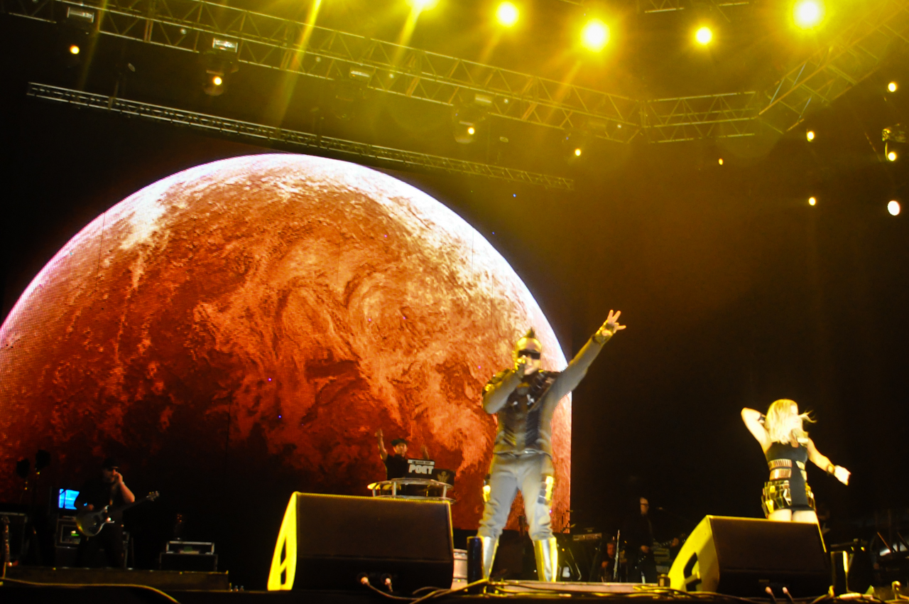 Com uma mistura de indie rock e música dançante, Kim não se limitou a ficar em sua bateria e Matt também não se contentou em ficar atrás de seu teclado, já que a todo momento procuravam interagir com o público e realizar uma ou outra de suas peripécias como se encoxar no palco, “surfar” nas mãos do público ou pular freneticamente sobre seus instrumentos.