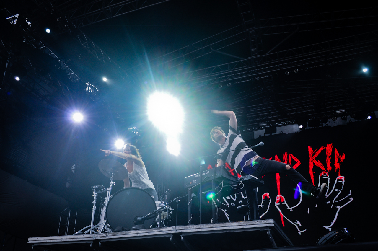 Abrindo a festa com um pedaço de “The Final Countdown”, música do Europe e um dos maiores hinos do metal-farofa de todos os tempos, Matt e Kim não pararam um minuto durante seu set.