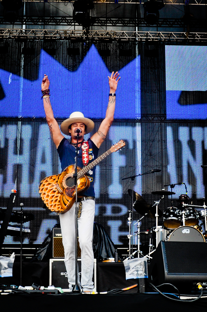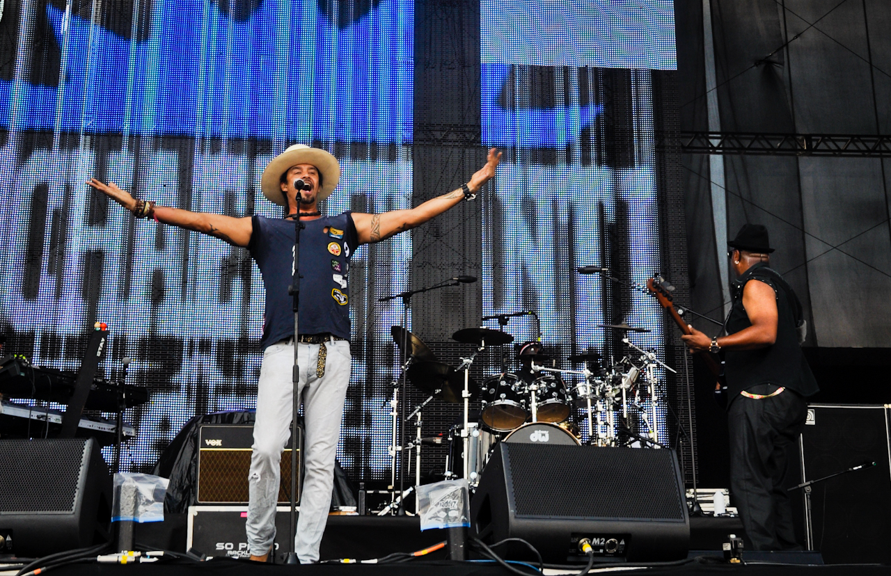 Michael Franti subiu ao palco do SWU com sua banda, o Spearhead e contou com o forte sol para combinar com sua mistura de jazz, funk, reggae e rock, além de suas letras e palavras de incentivo a causas sociais.