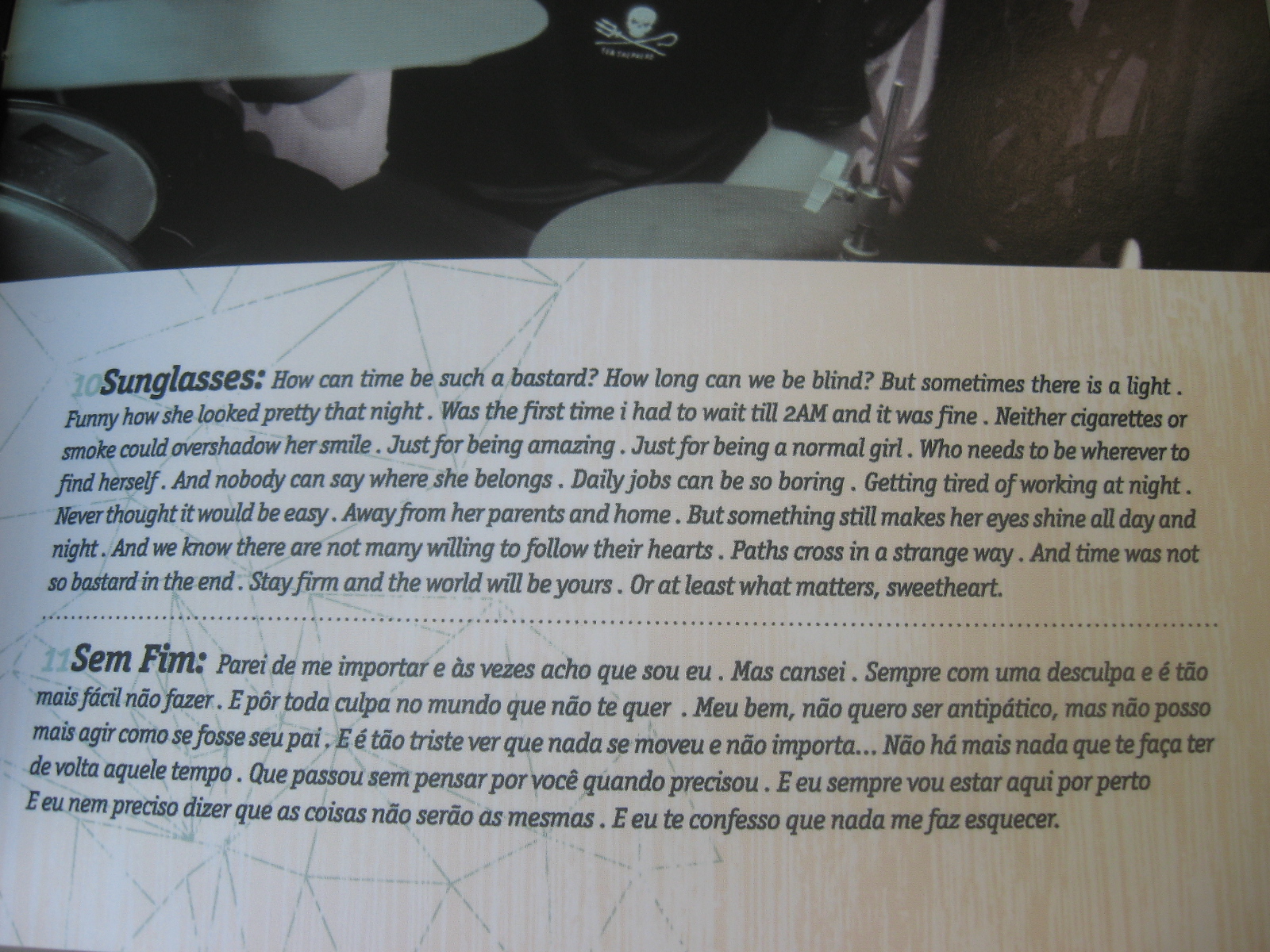 O disco também traz duas belas surpresas: em “Motim” existe uma parte onde o reggae é inserido e em “Sunglasses” podemos, pela primeira vez, ouvir uma gravação autoral da banda em inglês.