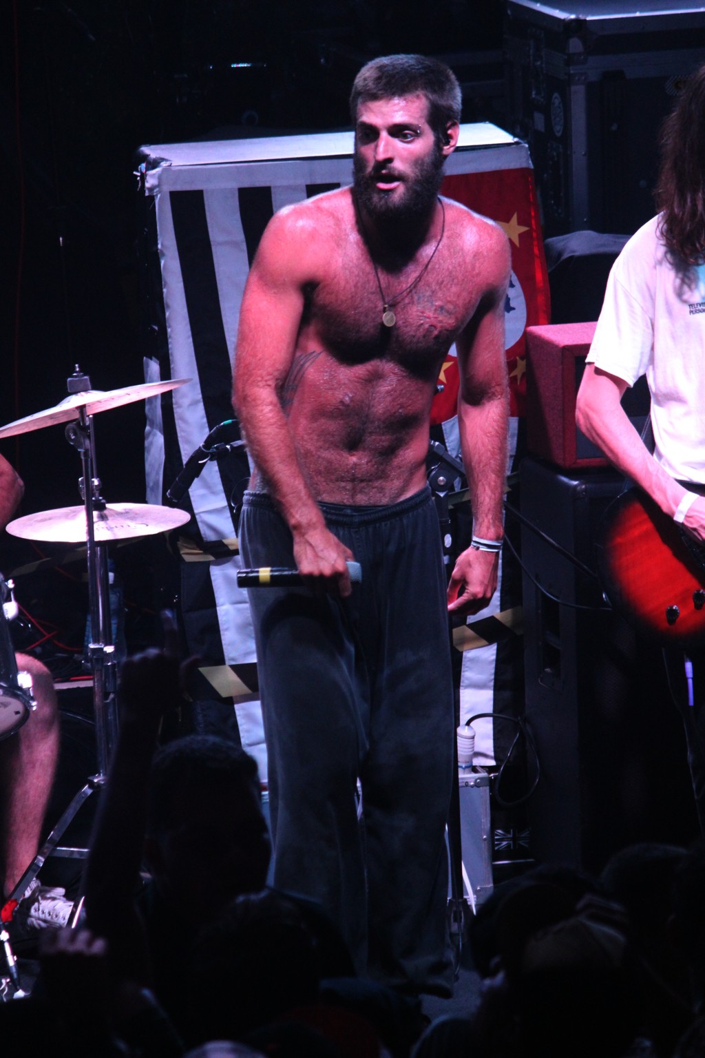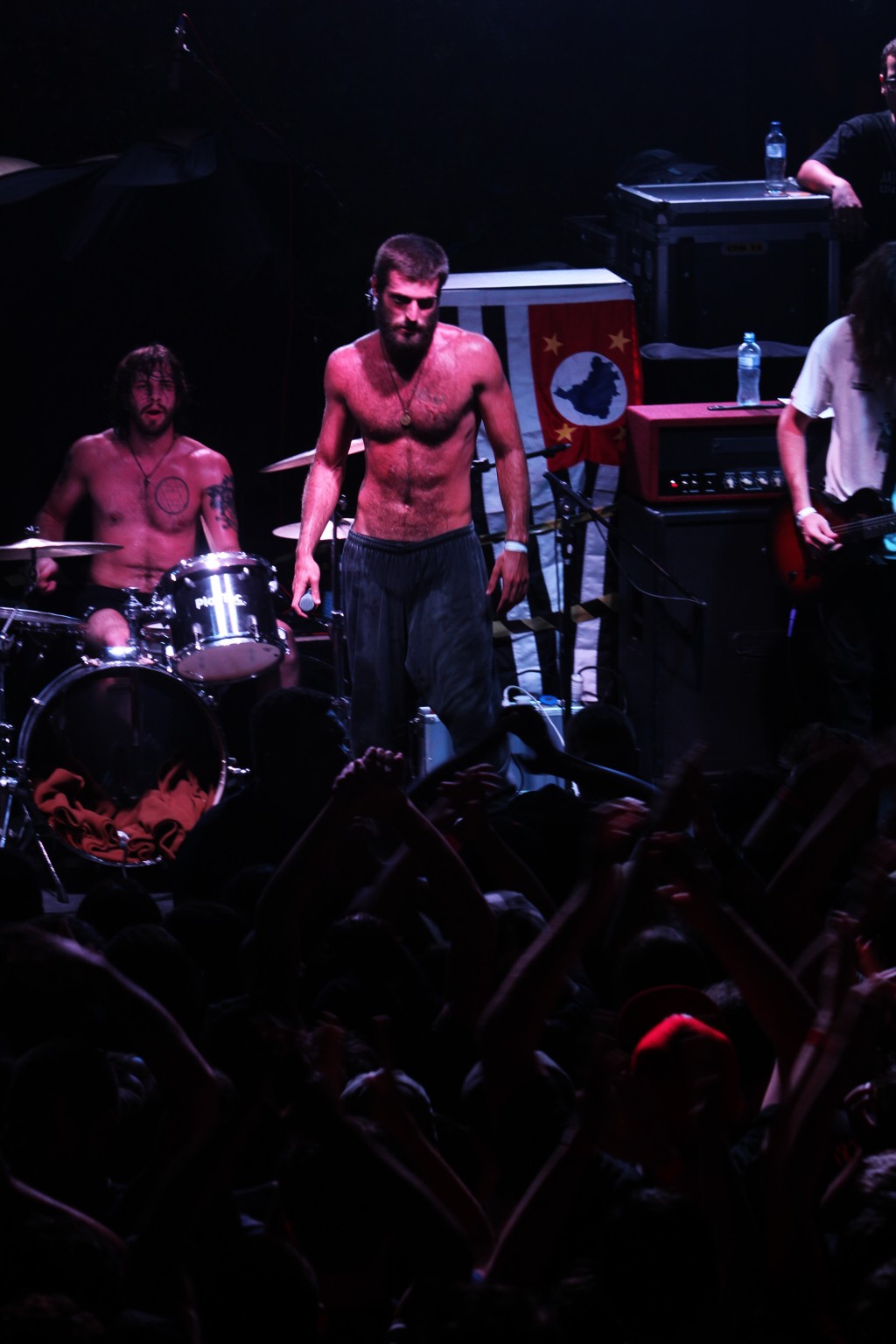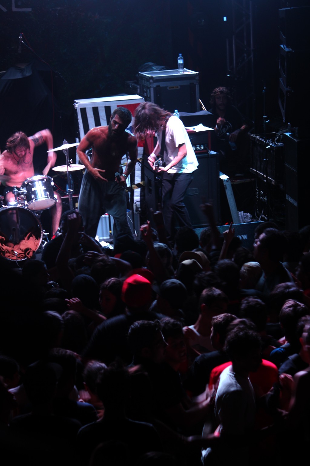 Em sons como “Escravo Espiritual” e “Quarto Escuro”, muito próximas no set, rodas de pogo foram iniciadas e a empolgação foi ao extremo por quem não estava ali única e exclusivamente pela banda de “Regina Let’s Go”.