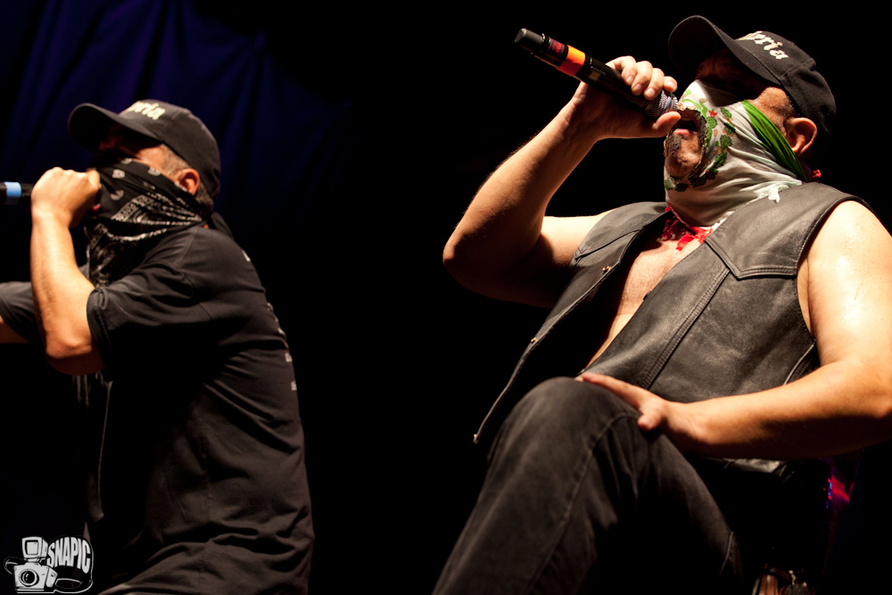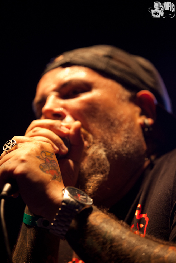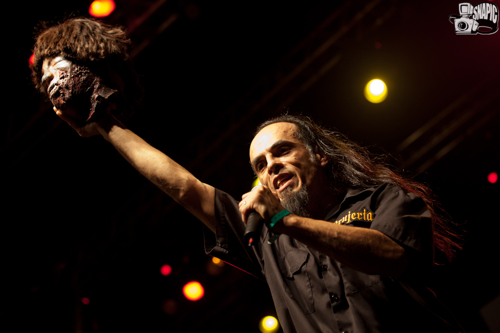 Com vinte minutos de intervalo, a narração que antecede “Raza Odiada (Pito Wilson)” iniciou ainda com a cortina fechada. O público parecia não entender se aquilo fazia parte da passagem de som ou se o show havia começado. A certeza da segunda opção veio com a abertura da cortina e com o conhecido riff pesado que inicia de vez a música. No comando dos vocais das músicas estavam El Brujo, Fantasma e Pinche Peach, fora João Gordo que entrou no palco em “La Migra”, isso lá pelo meio do show. Antes, porém, eles fizeram uma viagem ao primeiro disco quando tocaram “Cruza La Frontera”. Fora o espetáculo no palco, Pinche Peach desceu à grade para deixa o ambiente ainda mais tenso junto aos seguranças, que pareciam não poder lidar com toda àquela situação. Destaque também para a música “Brujerizmo”, o conhecido facão do El Brujo e a cabeça decepada que Pinche segurava durante as músicas.