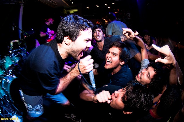 E em cima do palco os caras comprovam seu status. Abrindo com “9006” e com a mesma energia de sempre, principalmente do vocalista Reynaldo Cruz, que merece um texto, ou melhor, um livro só para ele, a banda começou sua ode ao movimento, com um público tão entregue à banda e uma casa já tão cheia que daria pra apostar – sem ver o flyer do evento – que a banda da noite era o Plastic Fire. Isso porque as músicas da set dos caras foram cantadas intensamente, de coração e salteado. E quem não sabia cantar, pogava – muito, no caso do Plastic Fire. Mesmo as músicas mais recentes, “Segundos” (versão feita pela banda de “Seconds“, do Bullet Bane) e “Fugaz“, ambas do recentemente lançado split Chumbo, eram cantadas como hinos de anos e anos, com olhos fechadinhos que nem os das velhinhas no show do Roberto Carlos supracitado.