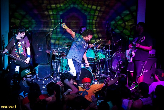 Sem dúvida uma espetacular surpresa o show da Incendiall. Tanto pela sonoridade da banda, que tira um barulho bem específico, com influências de Comeback Kid, Colligere, e Shai Hulud, entre outros, quanto pela técnica, presença de palco e pressão de som na execução das canções. Uma maturidade tamanha que ninguém diria que era o segundo show dos caras. Rolou até participação especial de Madão, baixista da Plastic Fire, que subiu ao palco com sua cervejinha, a convite do vocalista Thiaguinho Tim, para cantar “Diferenças tão Comuns” junto com a banda, que mostrou com seu show que o hardcore carioca ainda tem muita lenha pra queimar.
