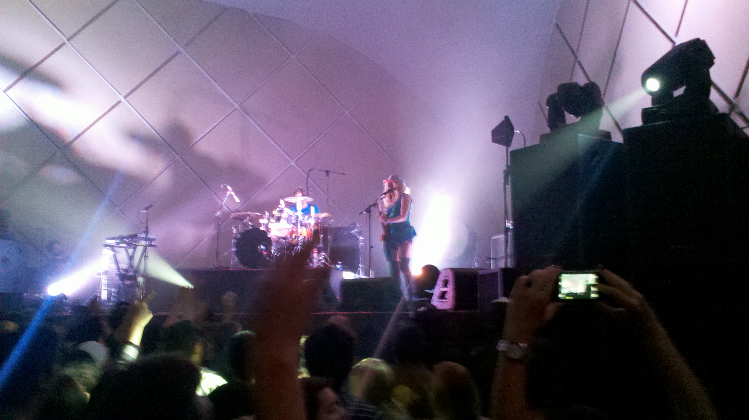 Entre uma e outra, Katie agradecia ao público e arranhava um português, lendo-o de um papel. Seu discurso terminou com: “Meu português é horrível, por isso vamos parar de falar e vamos dançar!“. A banda era muito versátil no palco, sempre trocando de instrumentos. A vocalista tocava umas horas guitarra, umas baixa, batia em teclados e andava muito pelo palco, o que dava um enorme trabalho ao roadie, que não parava de desenrolar o cabo do microfone dela. Jules também intercalava entre sua guitarra, bateria e teclado, além de participar dos vocais de diversas músicas.