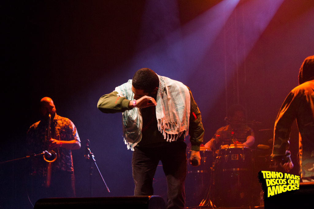 Em uma espécie de transe e parecendo estar sempre emocionado, Criolo fazia cara de choro, pulava, dançava, se contorcia, e ao lado de Daniel Ganjaman conduzia as milhares de pessoas durante músicas como “Subirusdoistiozin”, “Samba Sambei” e “Sucrilhos”, que contou com um grito ensudercedor de “Sou Brasileiro!” vindo da plateia.