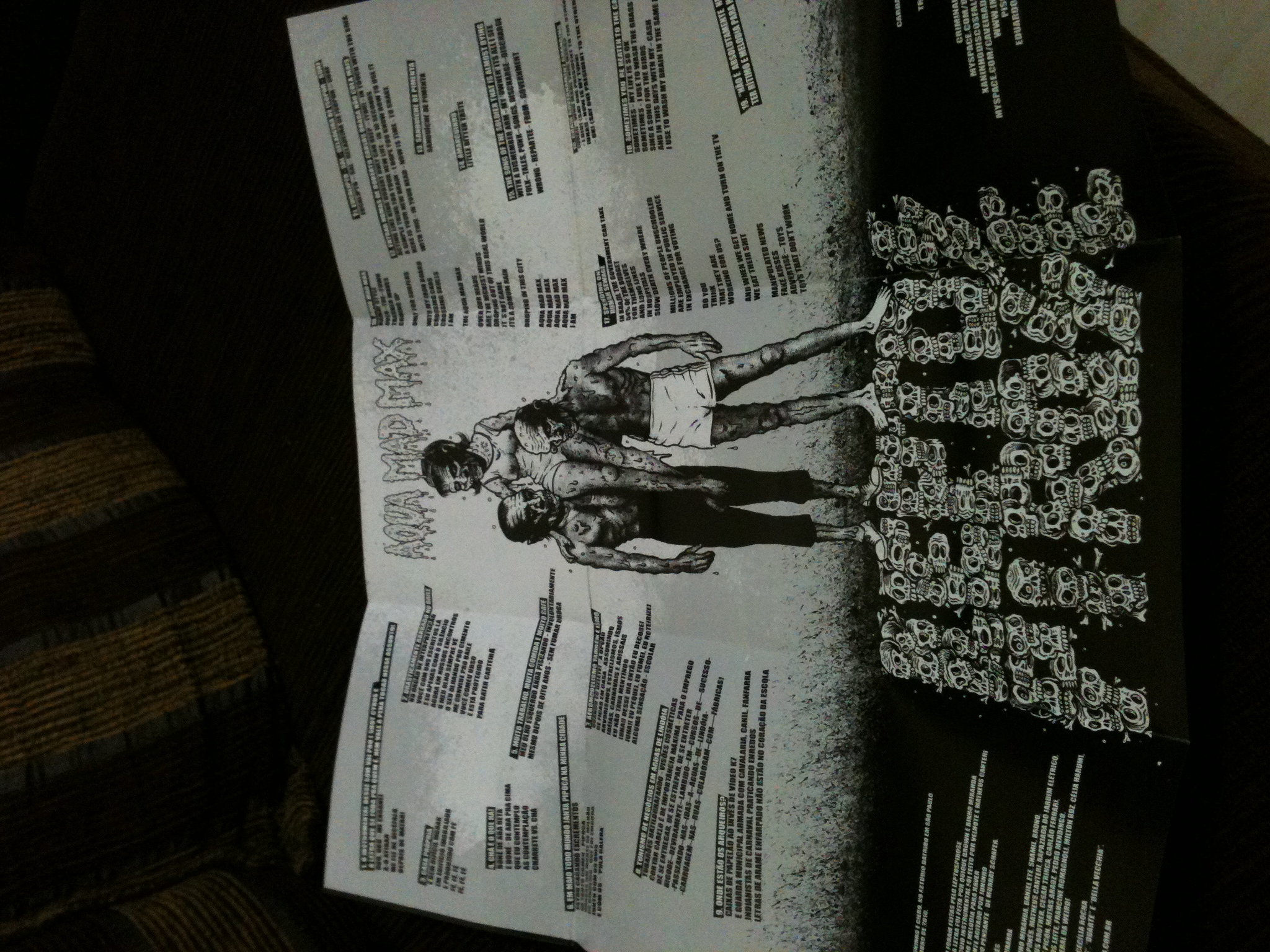 Quando eu comecei a ouvir o bom e velho roque e roul, eu curtia muito ouvir um disco de cabo a rabo acompanhando as letras no encarte. Isso é uma experiência única de entendimento do álbum, uma espécie de contato íntimo com um trabalho que infelizmente, nessa era da música digital, tende a acabar. Confesso que eu mesmo não tenho feito mais isso. Ouvir música no carro enquanto corro de um lado para o outro se tornou um fato. Ler o encarte enquanto dirijo poderia acabar em arranhar meu carro, batendo com ele em alguma coisa no meio do caminho enquanto estivesse absorto com as letras do disco. Mas eis que pulula em minha mão uma obra digna de puro respeito: Aqua Mad Max“, terceiro álbum do Leptospirose, a banda de Hardcore/Grind mais Prog que eu já ouvi pelo Brasil.