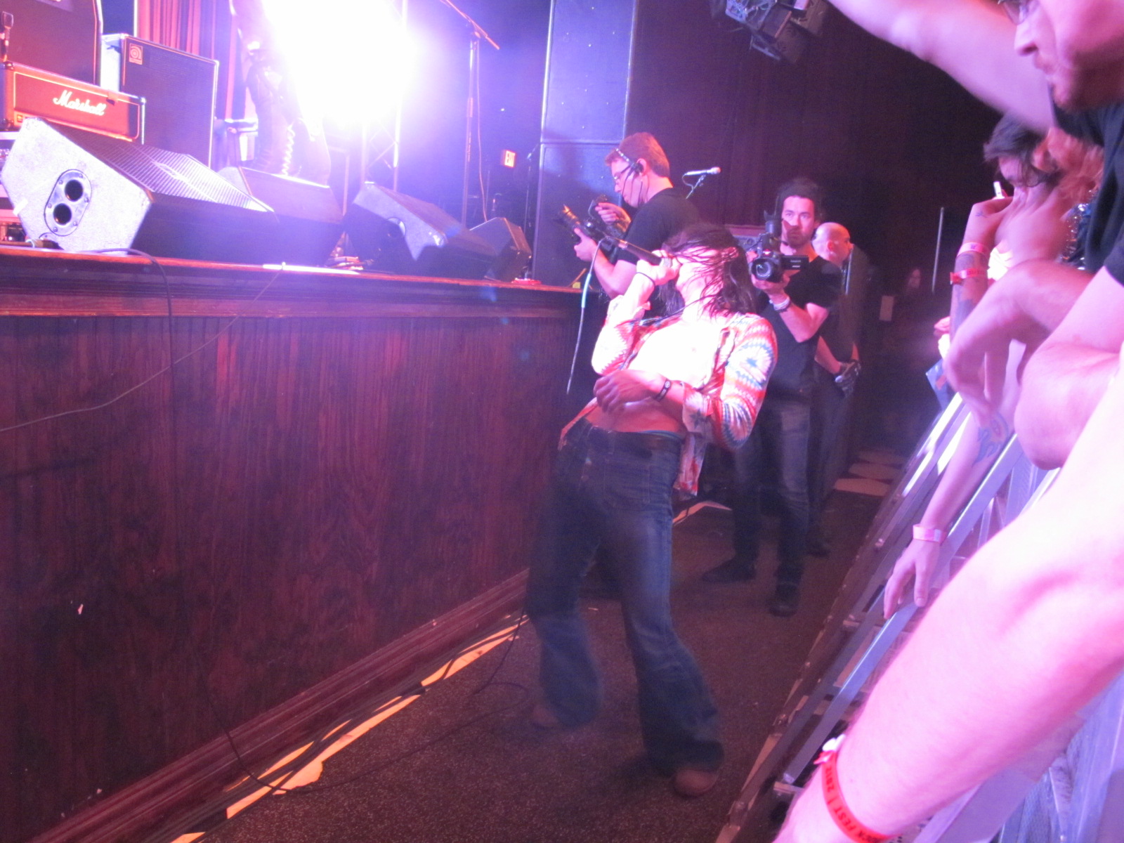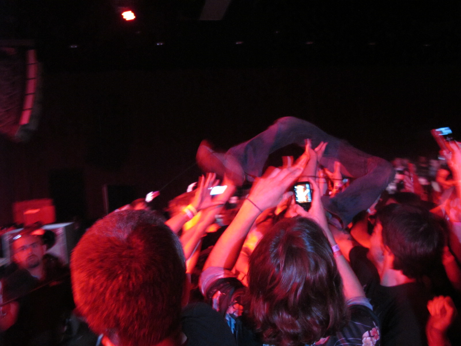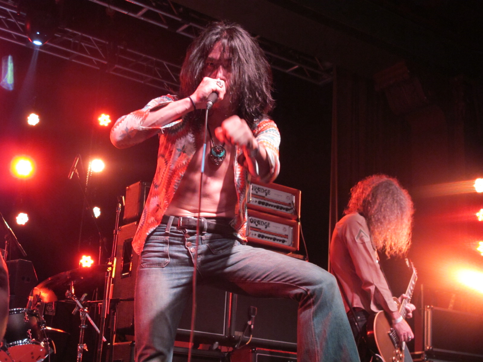 Com um cenário desses, não demorou muito para que Hideki se jogasse na plateia. Como um verdadeiro showman, o vocalista incitou a reação cada vez mais violenta do público, caiu várias vezes do palco, mas continuou cantando como se nada tivesse acontecido. Enquanto isso, o baixista Tatsu Mikami se mantinha à esquerda do palco com seu baixo Rickenbacker na altura dos joelhos, solando com um wah wah na tradição sabbathiana de Geezer Butler no clássico “N.I.B.”.