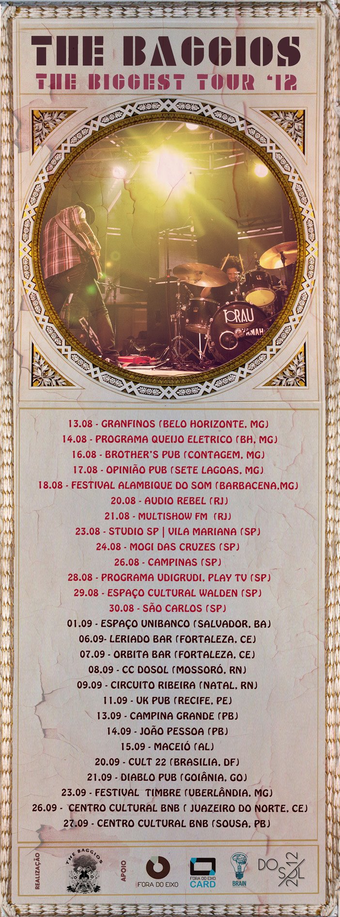 A fantástica dupla sergipana de rock and roll, blues rock e psicodelia, The Baggios, incia nesta segunda-feira, 13 de agosto, sua maior turnê.