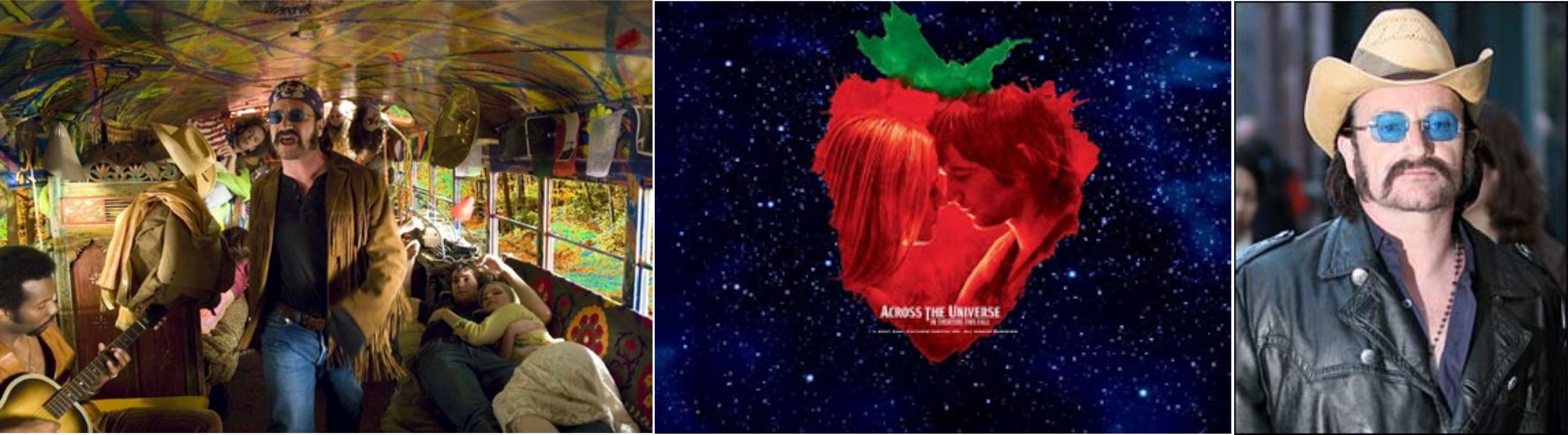 Bono Vox (U2) interpréta a música “I Am The Walrus” no filme Across The Universe, baseado em histórias de músicas dos Beatles com a Guerra do Vietnã de pano de fundo.