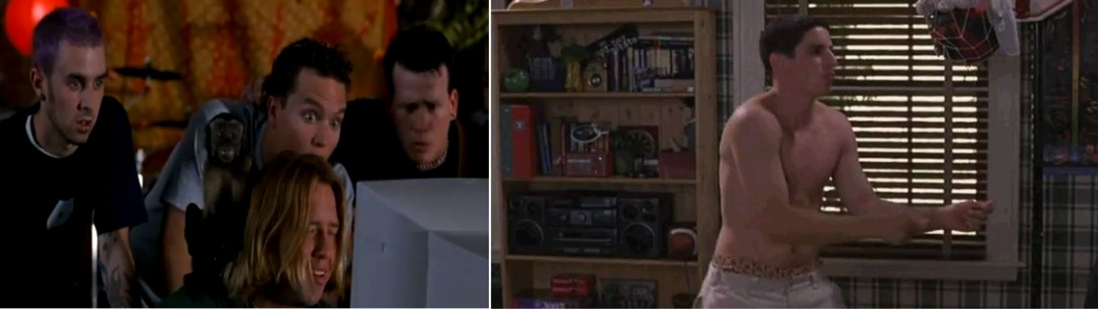 Em um tempo longínquo onde ainda utilizávamos monitores gigantes, a Internet parecia funcionar bem, já que eles e mais uma galera assistem à transmissão do protagonista Jim (Jason Biggs) falhando na cama com a gostosona do filme.
