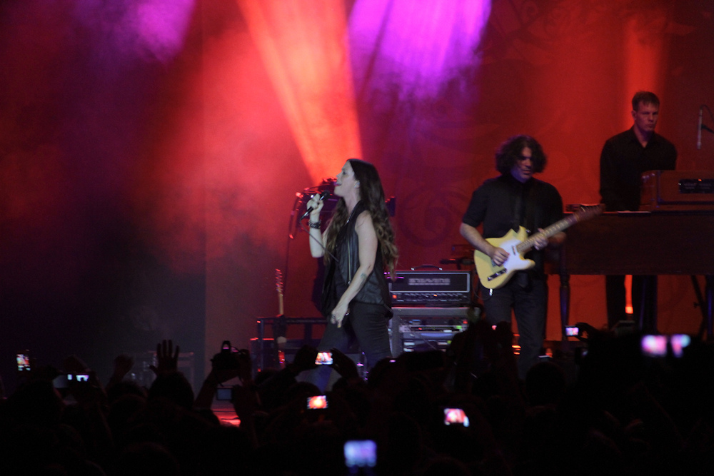 Sempre acompanhada de uma excelente banda, Alanis começou seu show com alguns minutos de atraso, pouco antes do relógio marcar 22h30. Como de costume, ela cantou o primeiro trecho de uma música sua, nesse caso “I Remain”, ainda no backstage, e depois surgiu na frente da plateia para emendar com “Woman Down”. O público, de idade bem variada, de início respondeu timidamente. Porém, em seguida veio “All I Really Want” e “You Learn”, alguns dos primeiros hits de Alanis, e o coro daí em diante se tornou uníssono em vários momentos.