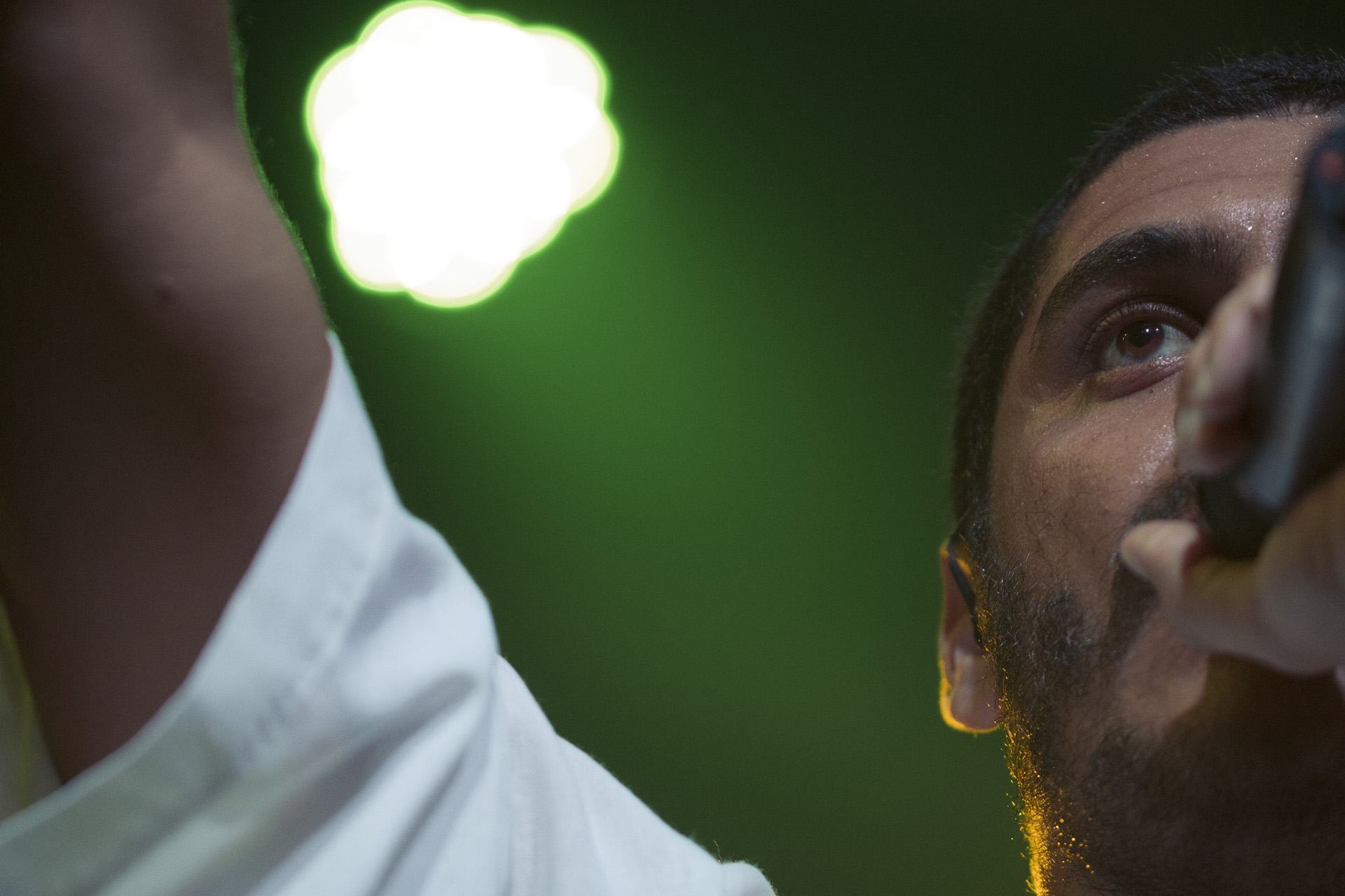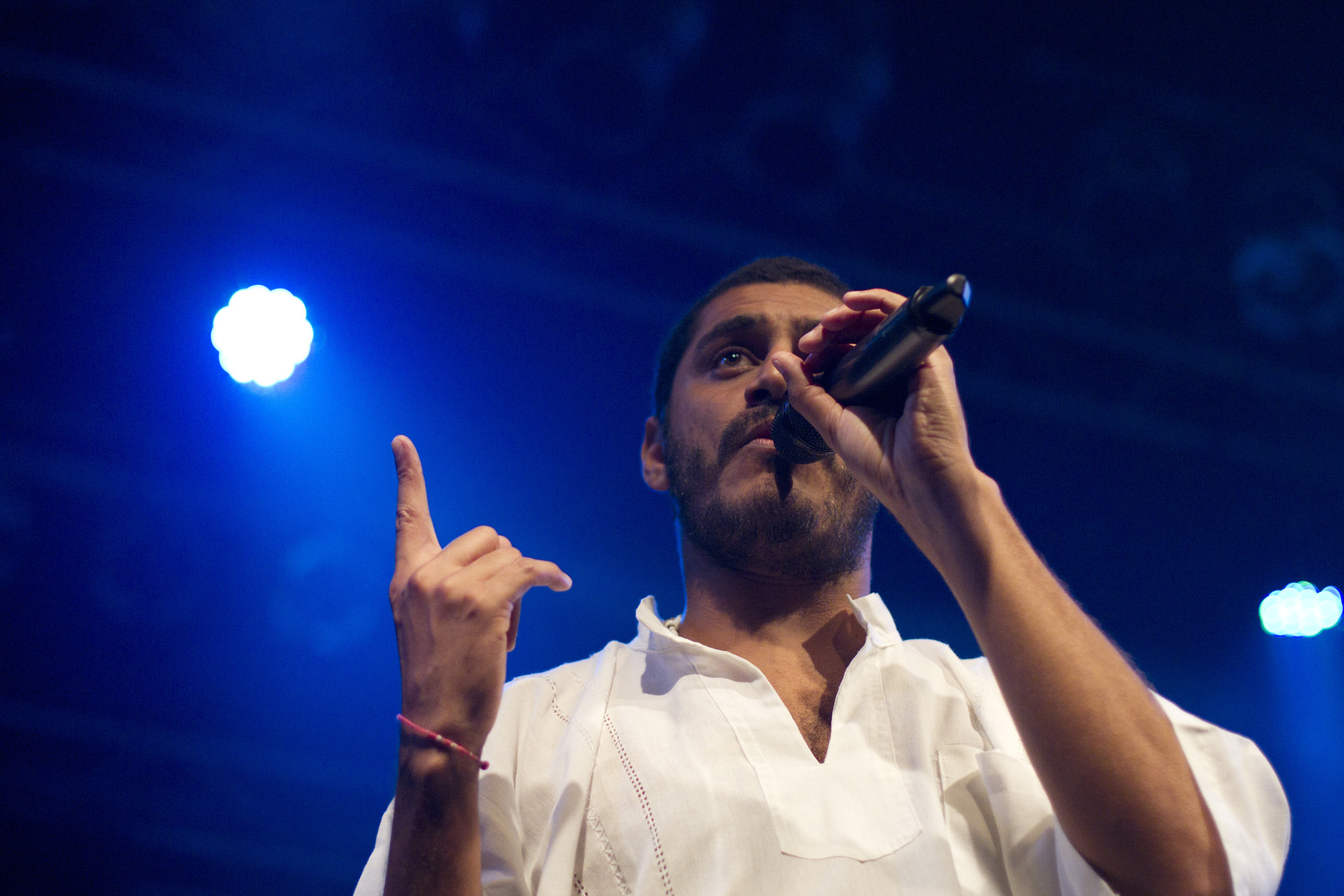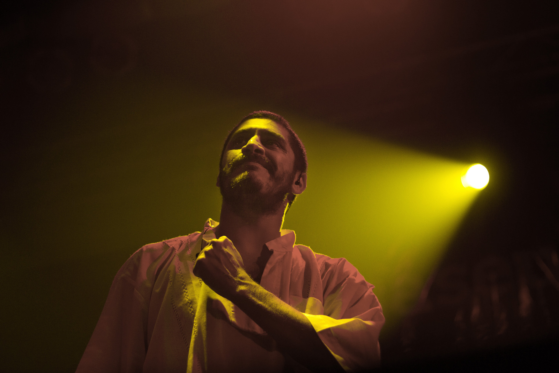 Criolo também não é só Criolo, é Dj Dan Dan, Ganjaman, Cabral, e toda banda. “Mariô”, a primeira música (como esperada), não seria a mesma sem percussão e coro, e talvez sem isso não levasse tanta gente ao show. Mas apesar disso, da banda e da extroversão de Dan Dan, ainda é Criolo que prende a atenção de todos. Super expressivo, vezes sério, tranquilo, outras com olhos arregalados, aficionado, como se a propria música promovesse uma espécie de transe. A sensação geral é esse próprio transe, que parece atingir o público à mesma medida que o atinge. O coro, e o transe culminam em “Não existe amor em SP”, o quase-bolero cantado por todo público, e pelo cantor, com uma luz pontual no centro do palco.