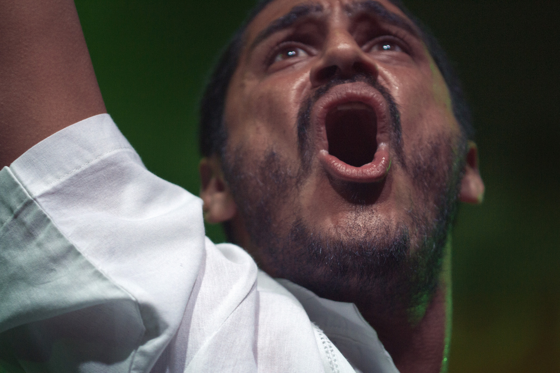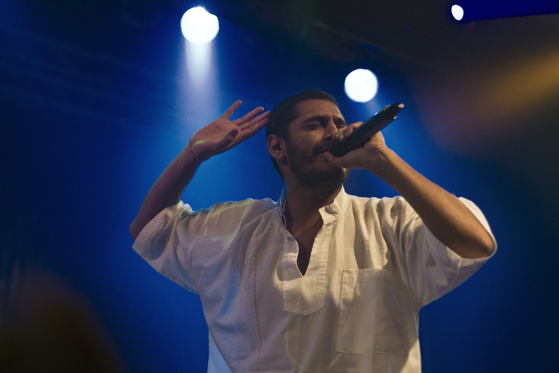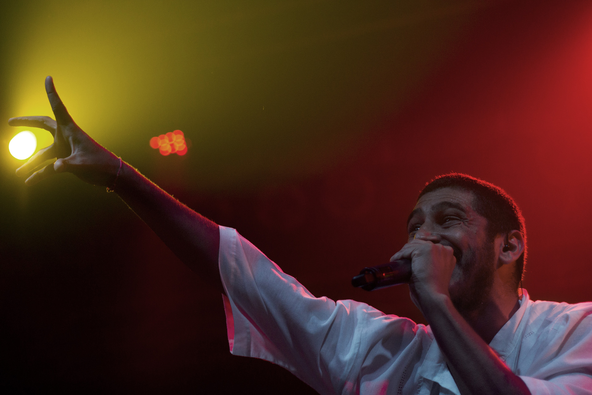 Criolo também não é só Criolo, é Dj Dan Dan, Ganjaman, Cabral, e toda banda. “Mariô”, a primeira música (como esperada), não seria a mesma sem percussão e coro, e talvez sem isso não levasse tanta gente ao show. Mas apesar disso, da banda e da extroversão de Dan Dan, ainda é Criolo que prende a atenção de todos. Super expressivo, vezes sério, tranquilo, outras com olhos arregalados, aficionado, como se a propria música promovesse uma espécie de transe. A sensação geral é esse próprio transe, que parece atingir o público à mesma medida que o atinge. O coro, e o transe culminam em “Não existe amor em SP”, o quase-bolero cantado por todo público, e pelo cantor, com uma luz pontual no centro do palco.