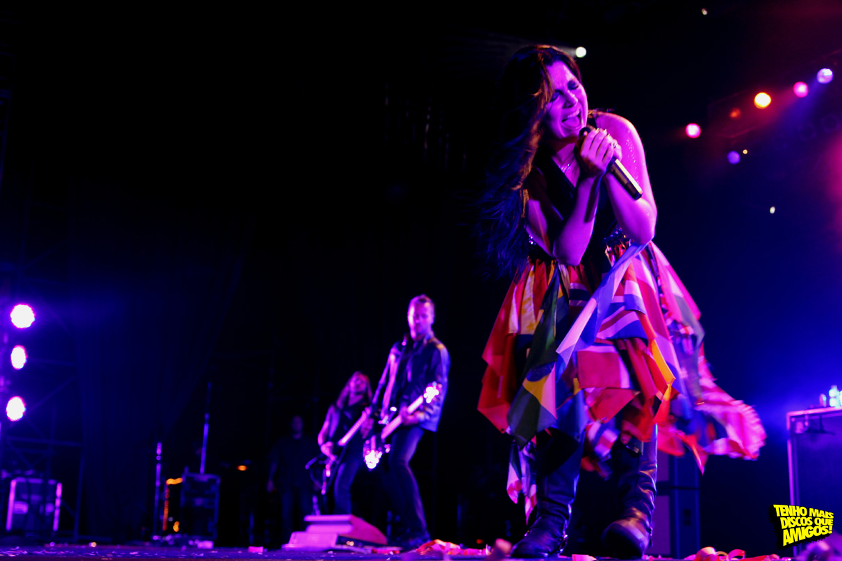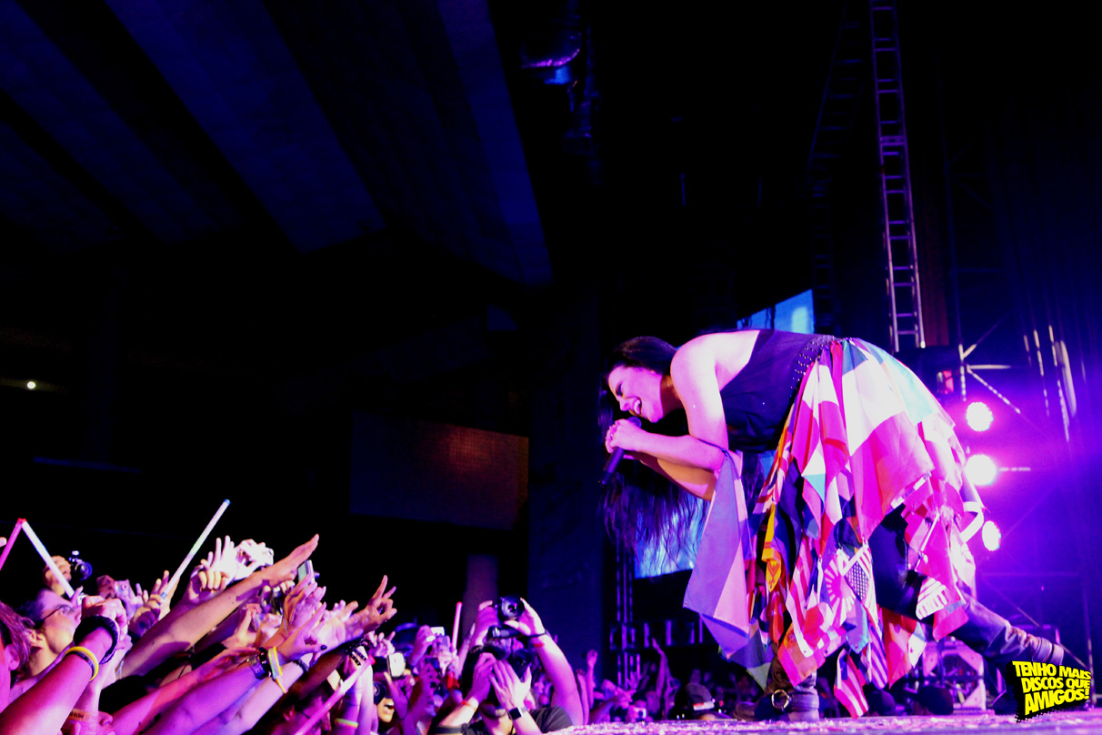 Na volta, a vocalista recebeu no rosto uma bandeira. Ela não gostou muito, mas levou na esportiva. E quase que outra pessoa chegava nela, mas foi impedida antes. A primeira no bis foi “Disappear”, música bônus do Evanescence.