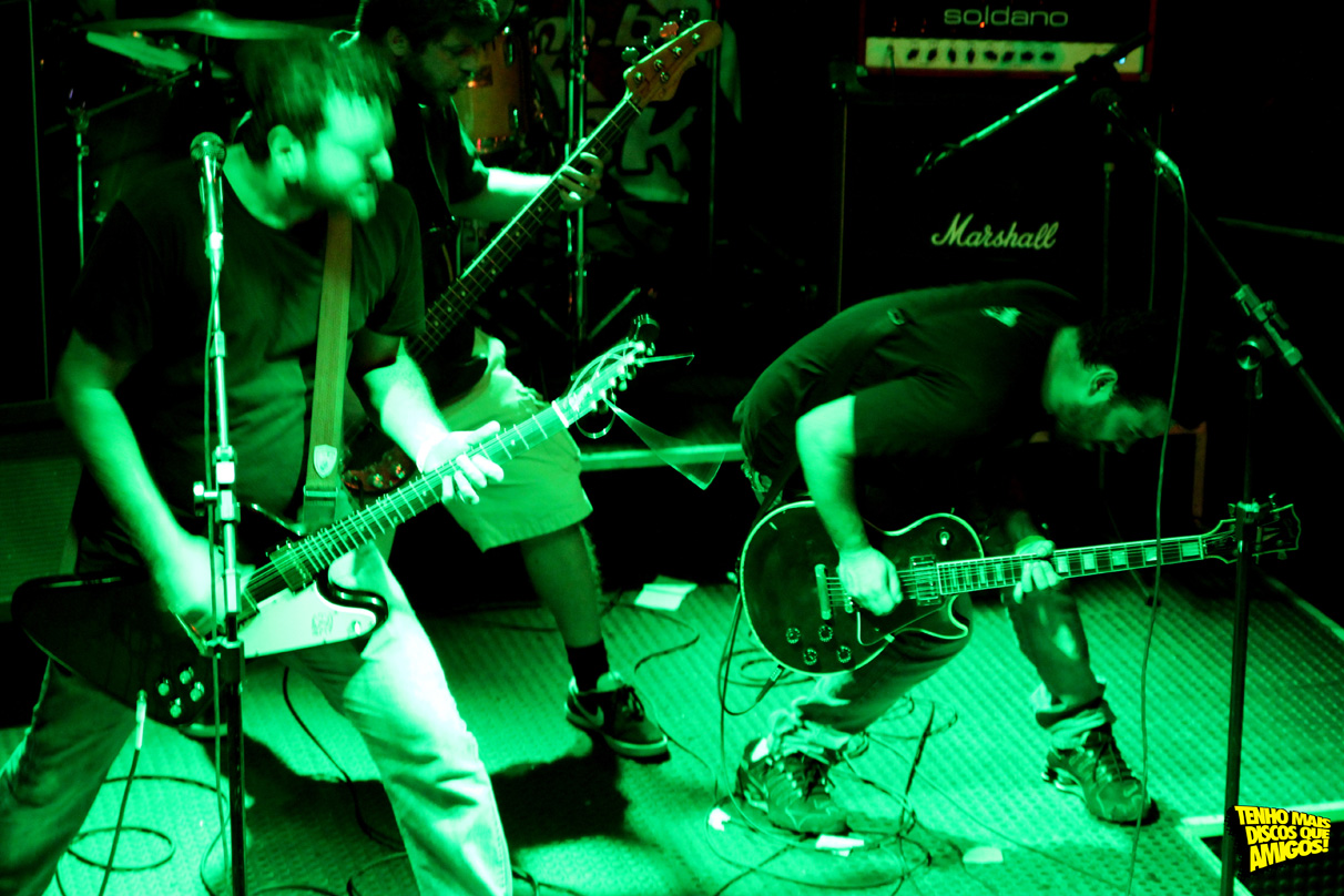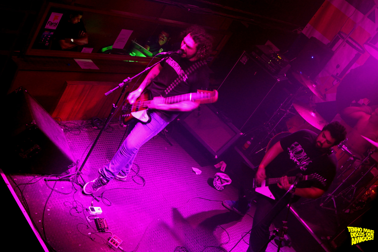 Com muita fúria, energia e muita entrega no pequeno palco, o trio foi mandando uma música atrás da outra sem parar até a metade do show. As letras eram entoadas sempre sob o comando do Kalyl, que também toca baixo. Amilton, guitarrista, executou os riffs e solos com excelência e, mesmo com o palco reduzido, se mexeu bastante. Renan, que antes de subir ao palco corria de um lado para outro no primeiro andar da casa como quem se esquenta para a prática de algum esporte, também conduziu a bateria com maestria.