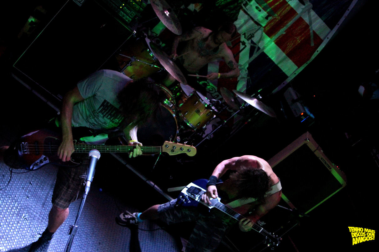 Cerca de 100 pessoas estavam na casa para acompanhar o início da apresentação. O quarteto mesclou músicas em inglês e em português e canções do disco de estreia, Pharmako Dinâmica, de 2008, com algumas do próximo álbum, que deve ser lançado no próximo ano. “Effectslast Try” foi a primeira, seguida da inédita “Care Less”. Na sequência veio “Ataque dos Aliens” e outra nova, “Happy Virus Day”, antes da banda dar uma pausa e pedir para que o som fosse regulado.