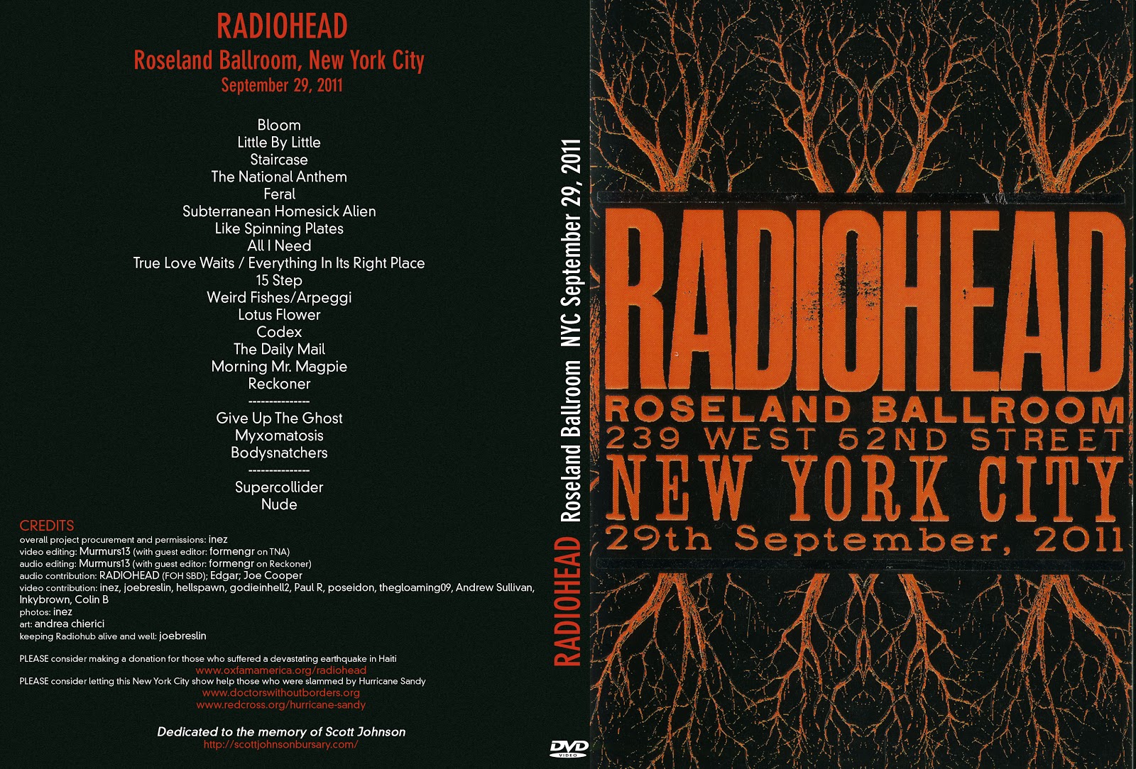 O DVD também foi dedicado a Scott Johnson, membro da equipe do Radiohead, que faleceu em junho deste ano.