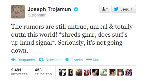 Os rumores são falsos, irreais e totalmente fora deste mundo! *Vamos dar um rolê, faz sinal de surf* Sério, não vai rolar.