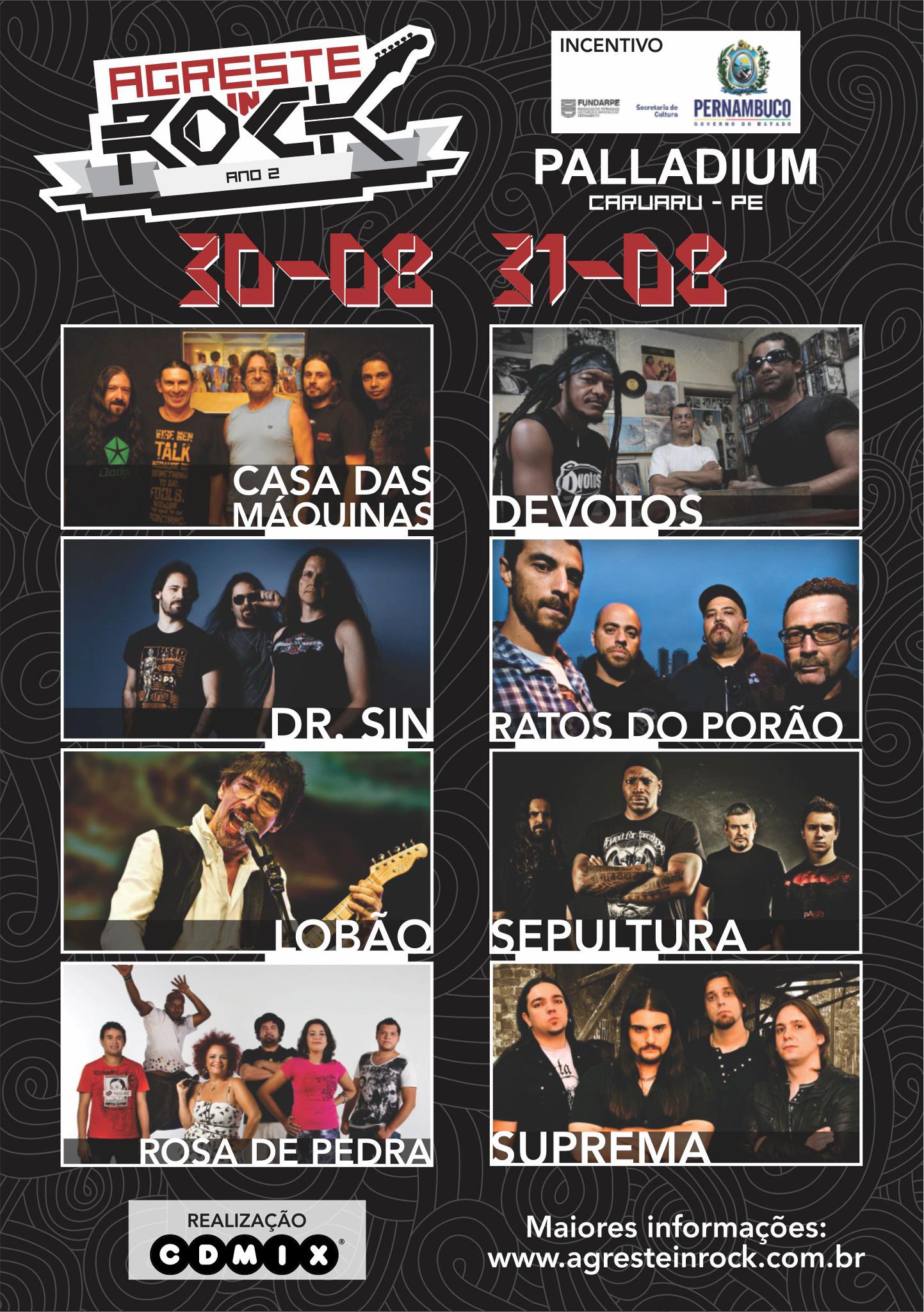 A produção do Agreste In Rock divulgou as atrações da edição 2013. O festival acontece nos dias 30 e 31 de Agosto na casa de shows Palladium, em Caruaru, Pernambuco.