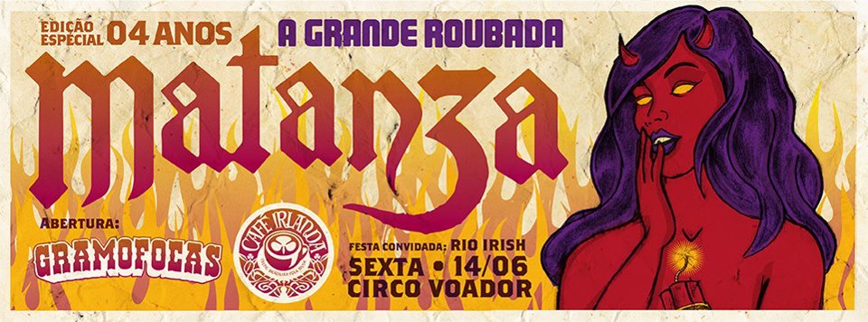Neste ano, a festa acontece no Circo Voador dia 14 e reúne as bandas Matanza, Gramofocas e Café Irlanda. Os ingressos variam de R$ 35 a R$ 80 e todas as informações estão na página oficial do evento no Facebook.