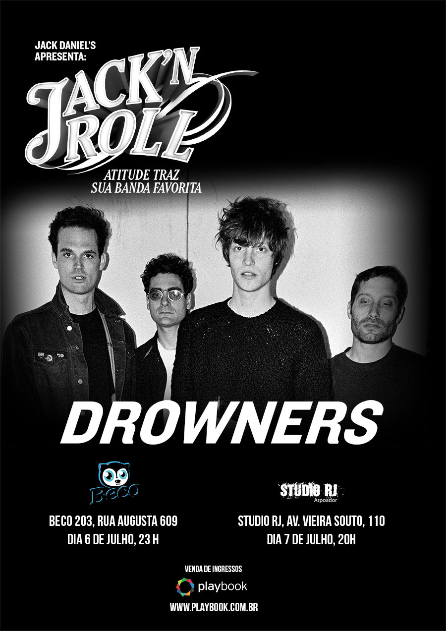 A banda nova-iorquina Drowners irá tocar aqui no Brasil no próximo fim de semana como resultado da parceria entre Jack Daniel’s e Playbook, na terceira edição do “Jack’n Roll”.
