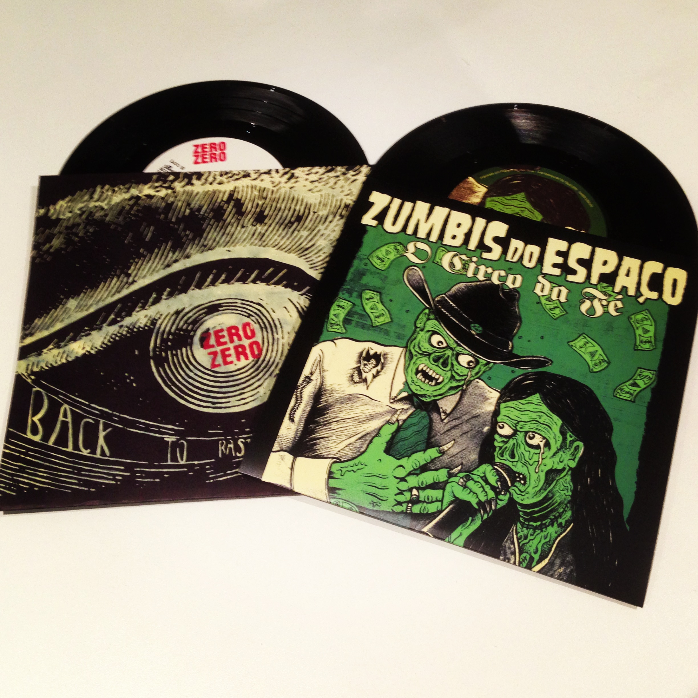 Em parceria com a Hearts Bleed Blue nós realizamos uma promoção valendo um kit com o single do Zumbis do Espaço, “O Circo Da Fé” e o EP da banda capixaba de punk/garage Zero Zero, Back To Basics, ambos em disco de vinil de 7 polegadas.