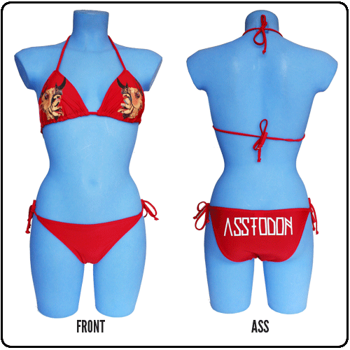 Depois do Ghost BC. e Slayer, o Mastodon lançou um traje de banho para apreciadoras de um som pesado. A peça traz a arte do álbum Hunter na parte superior e o logo ‘’Asstodon’’ estrategicamente colocado na parte de baixo.