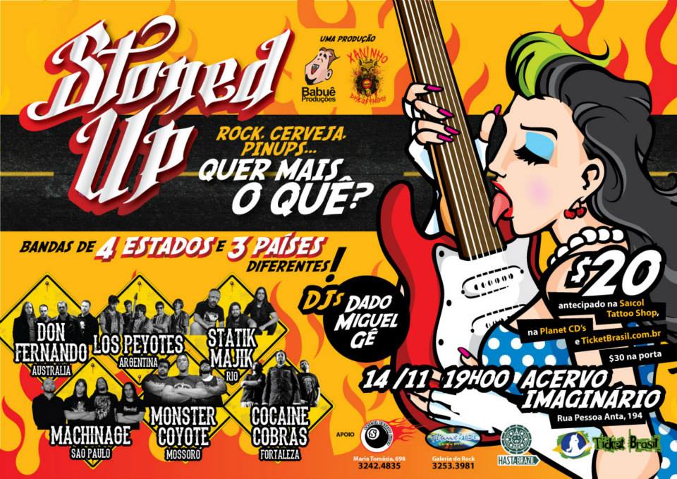 Esse é pra galera do Nordeste que ama rock, cerveja e pin-ups: o Stoned Up Festival foi feito pra você! As bandas que dominam a festa são a Cocaine Cobras, Monster Coyote, Machinage e Statik Majic daqui do Brasil e Don Fernando e Los Peyotes da gringa. Todas as informações do evento estão aqui.