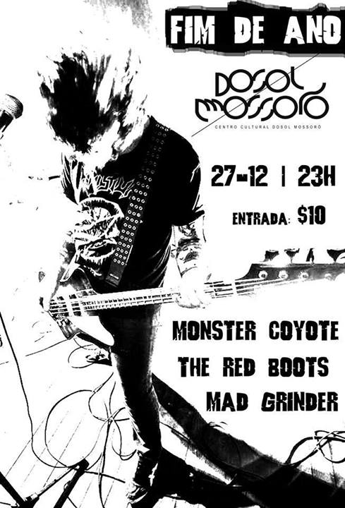O fim de ano para essa turma vai ser quente! Como você já viu aqui, o coletivo DoSol divulgou a agenda da Virada Cultural Natal, que acontece nesse fim de semana. Mas se você vai perder essa, não tem problema, porque dia 27 de dezembro é o show final: Mad Grinder, Monster Coyote e Red Boots mostram seu sou no Centro Cultural DoSol Mossoró.