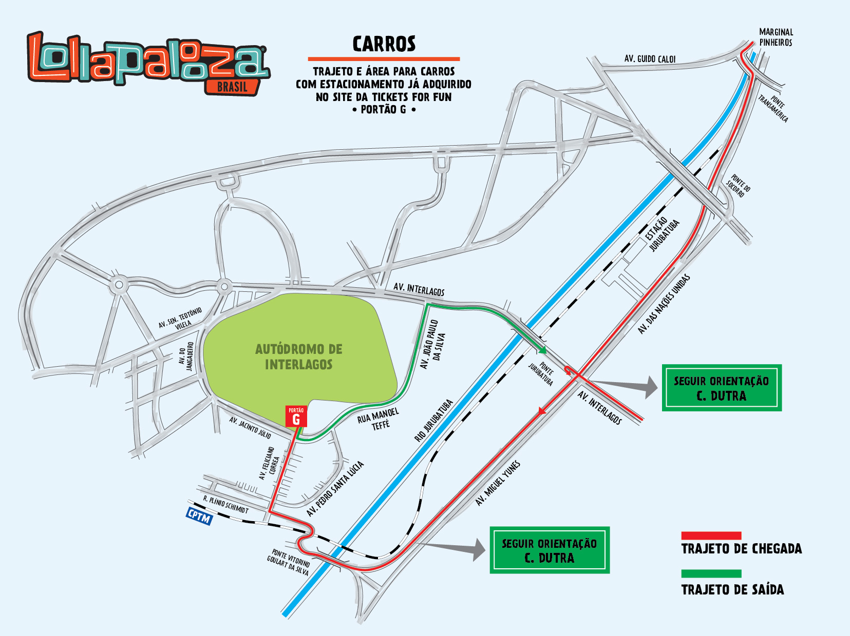 O passageiro deve sair da estação Autódromo, na Rua Plínio Schmidt, seguir pela esquerda até a Rua Justino Nigro, subir esta via até o fim, e estará no portão K9. Para os demais portões, os pedestres deverão seguir à esquerda pela Avenida Jacinto Júlio. Haverá uma equipe de orientadores, segurança e sinalização fixa indicando este caminho.