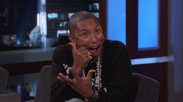 Pharrell é o novo queridinho dos programas da TV norte-americana. Após participar da performance que Gwen Stefani fez de seu hit “Hollaback Girl” no The Voice, agora foi a vez do artista ir se apresentar sozinho no late show Jimmy Kimmel Live!.