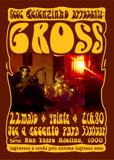 Na próxima quinta-feira, Marcelo Gross apresenta seu disco novo no SESC Belenzinho com uma novidade: o músico Charlye Coombes (ex-Supergrass) nos teclados. Além de Coobes, compõe a banda de Gross o baterista Clayton Martin (Detetives, Cidadão Instigado) e o baixista Fernando Papassoni (Detetives, Universo Elegante).