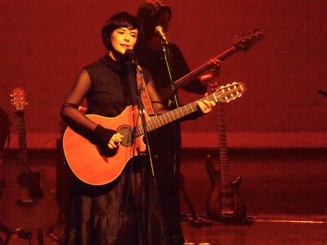 O sábado de quem esteve no Auditório do Ibirapuera para acompanhar de perto o lançamento do disco Na Medida do Impossível, quarto trabalho solo da cantora Fernanda Takai, ganhou sua dose de beleza e de fofura a partir das 21hs. Com a temática da cultura japonesa, as luzes do palco aos poucos mostravam, ao som dos primeiros acordes, um pouco do que poderia ser chamado de uma releitura da arte do disco: havia uma reprodução de uma árvore japonesa, alguns guarda-chuvas tradicionais pendurados e o figurino de Fernanda, assim como o de toda a banda, era inspirado em kimonos.
