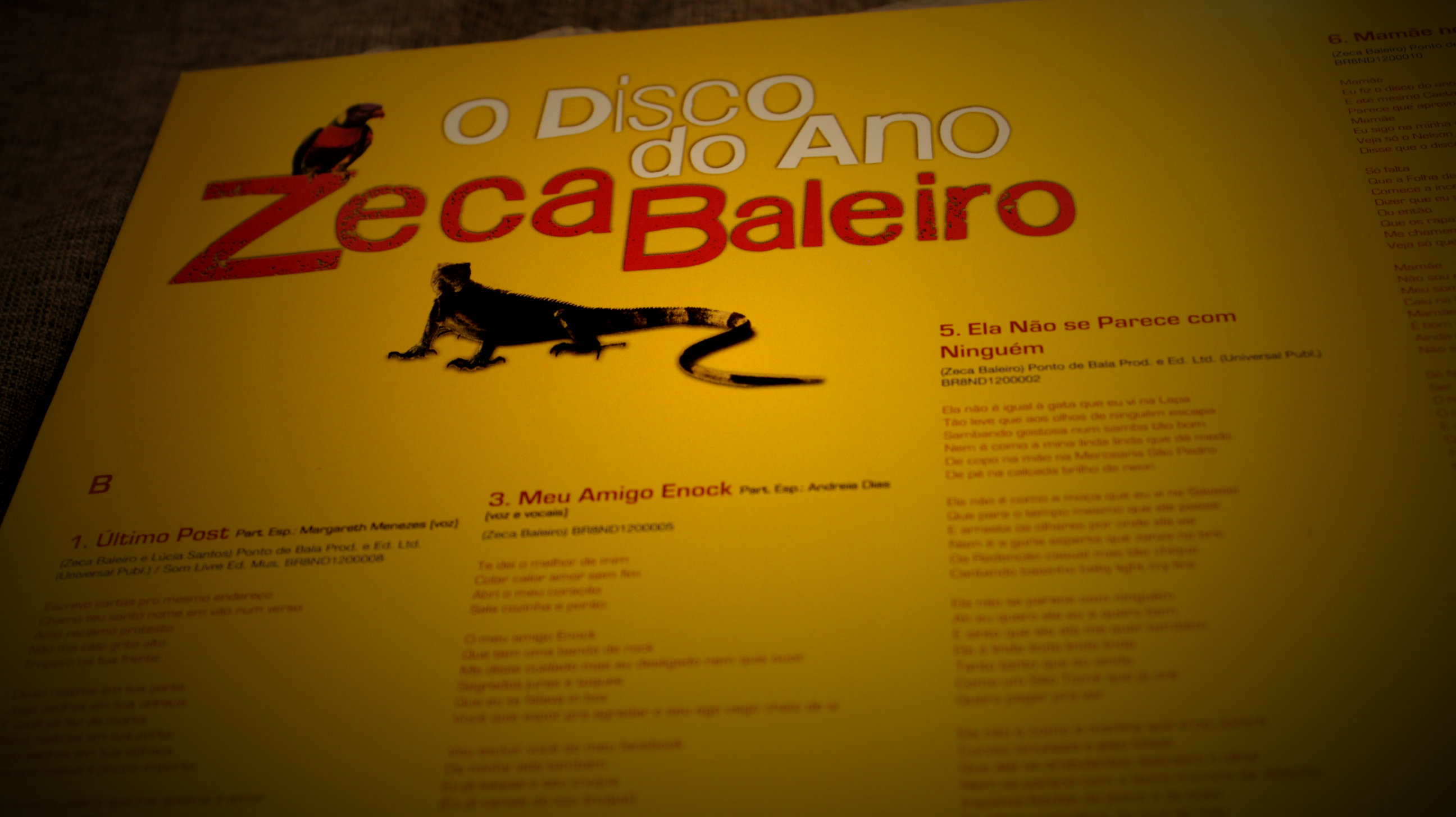 Vamos voltar para 2012 quando Zeca lançava seu último trabalho de estúdio. Com o nome irônico de O Disco do Ano o álbum vem de uma realidade musical onde muitos nem sabem bem o que seria um disco em questão de formato físico ou mesmo como um apanhado de músicas (pelo fato de muitos ouvirem apenas músicas saltadas). Mas para os que ainda preservam a vontade e o interesse de ouvir discos em seu formato de maior qualidade possível, a versão em vinil desse álbum do Zeca é com certeza muito interessante.