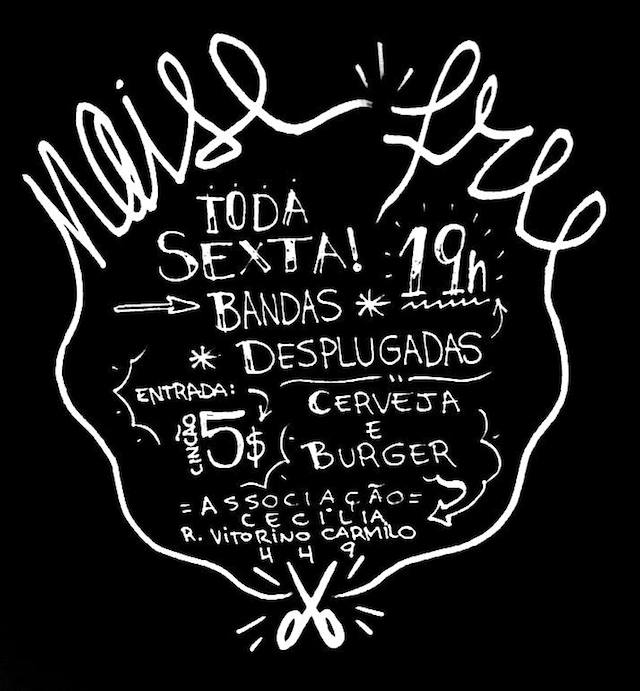 Com produção da Associação Cecília e da NWO Produções nasce a Noise Free, evento que levará para as noites paulistanas, toda sexta-feira, bandas ao vivo, em formato intimista, para divulgar seus trabalhos num evento com preço justo e diversão garantida.